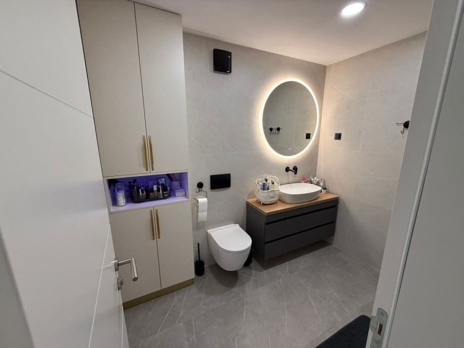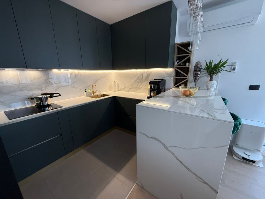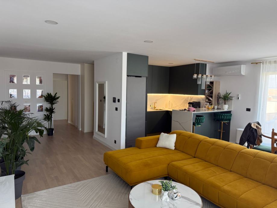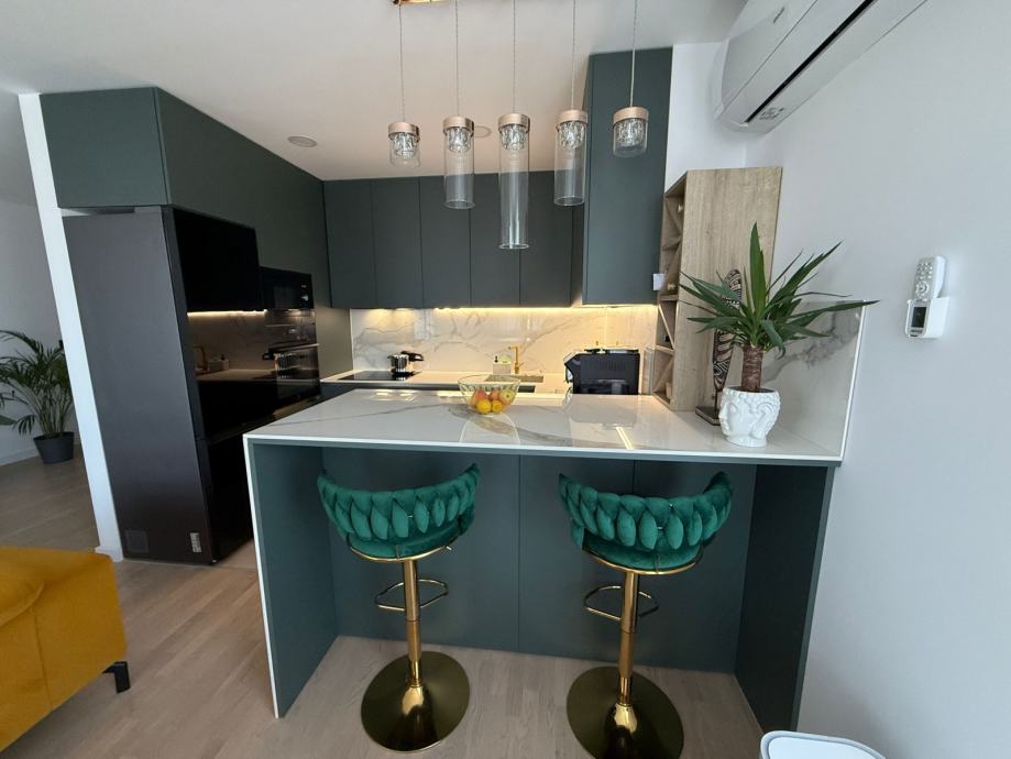 * Potpuno opremljen stan sa luksuznim namještajem i luksuznom opremom: kuhinja sa šankom, mramorom i aparatima, ugradbeni ormari u cijelom stanu, boravak, kupaonice, sobe, namještaj na terasi....