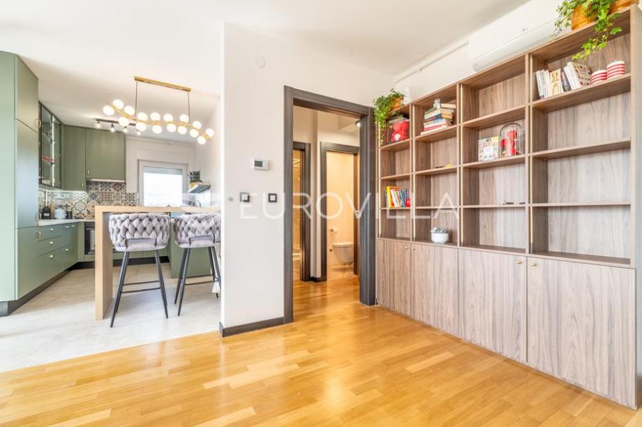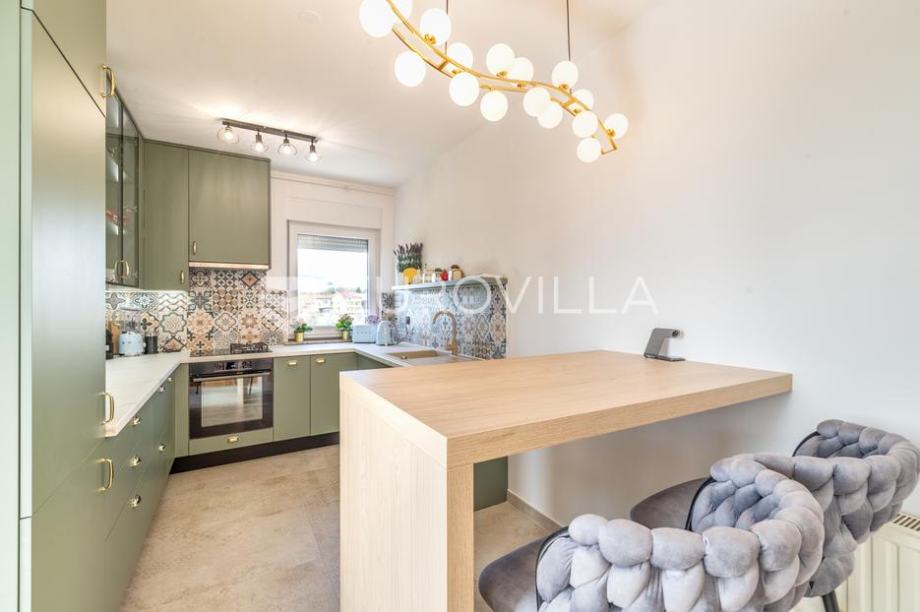 Zagreb, Bukovačka, bright two-room apartment on the third floor of a residential building with an elevator, which includes a garage parking space and an uncontested parking space.The apartment consists of an entrance hall, a living room with a kitchen and a dining room that opens onto a beautiful...