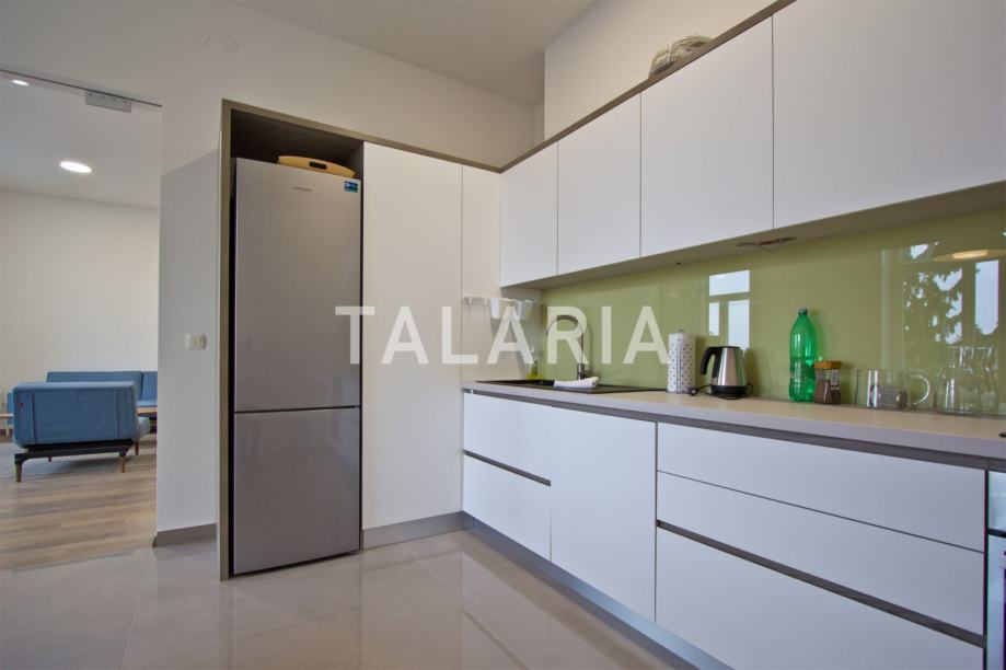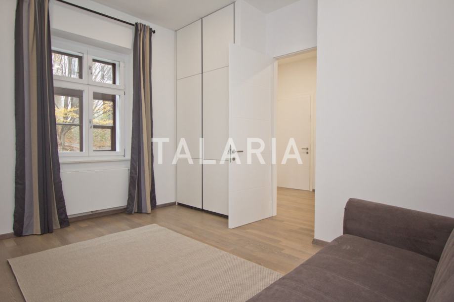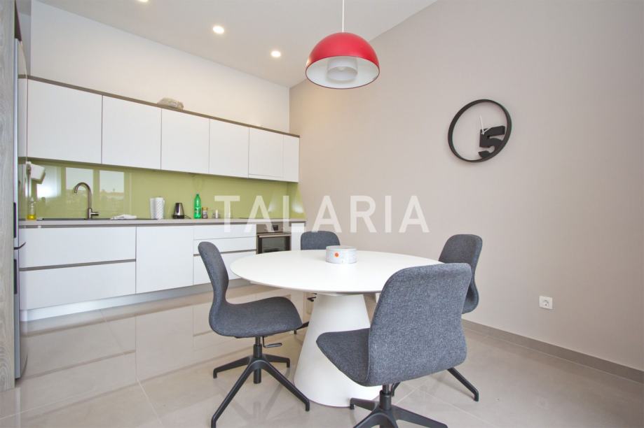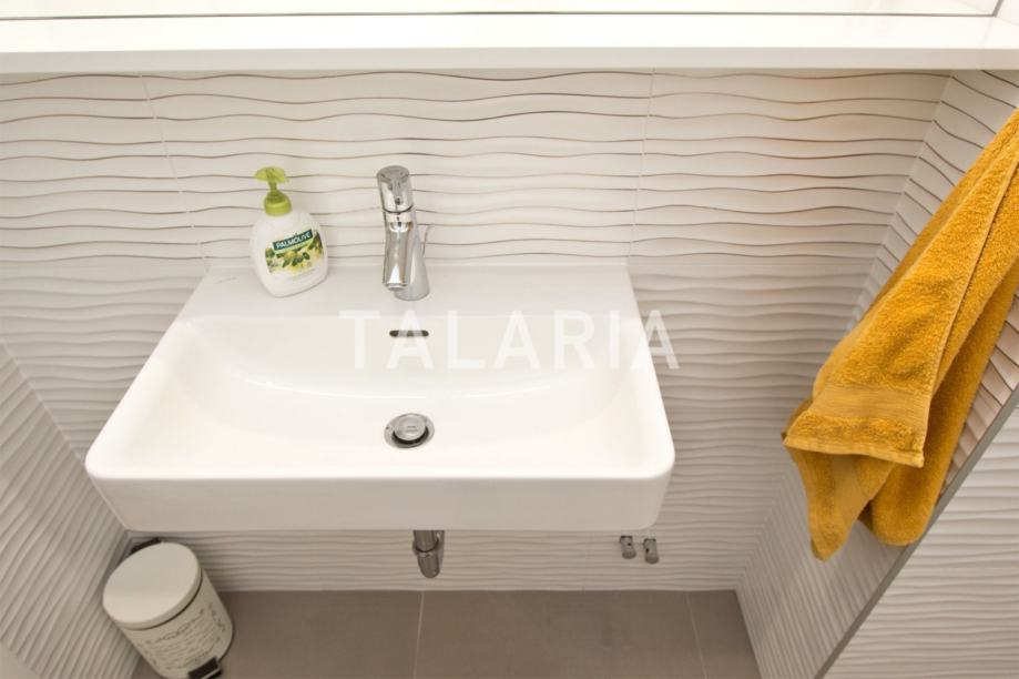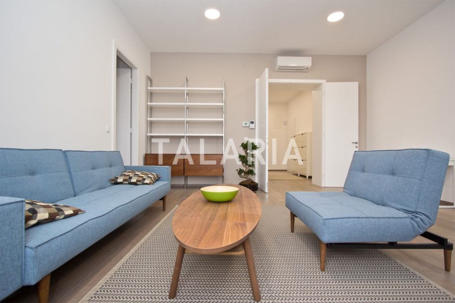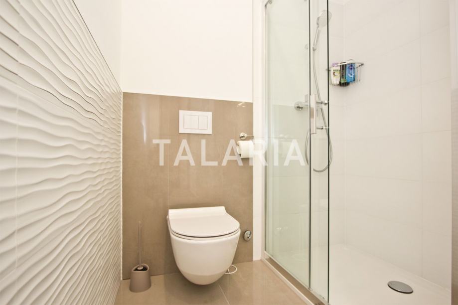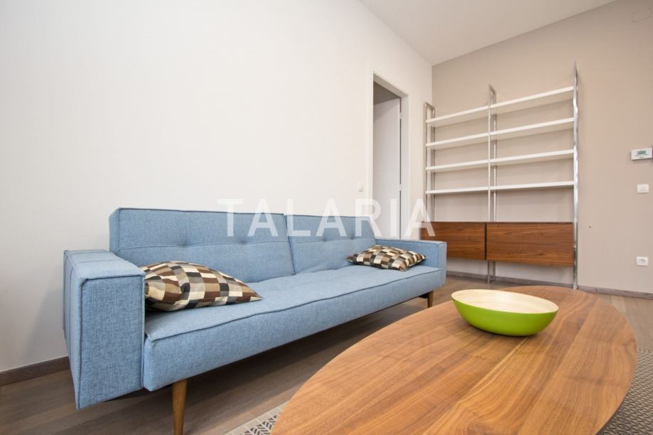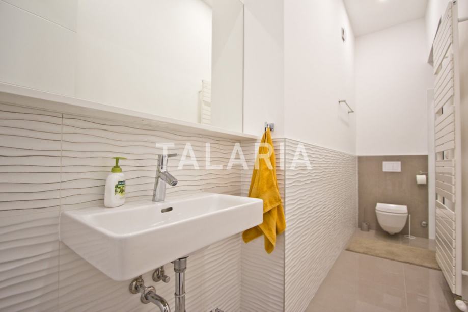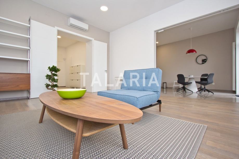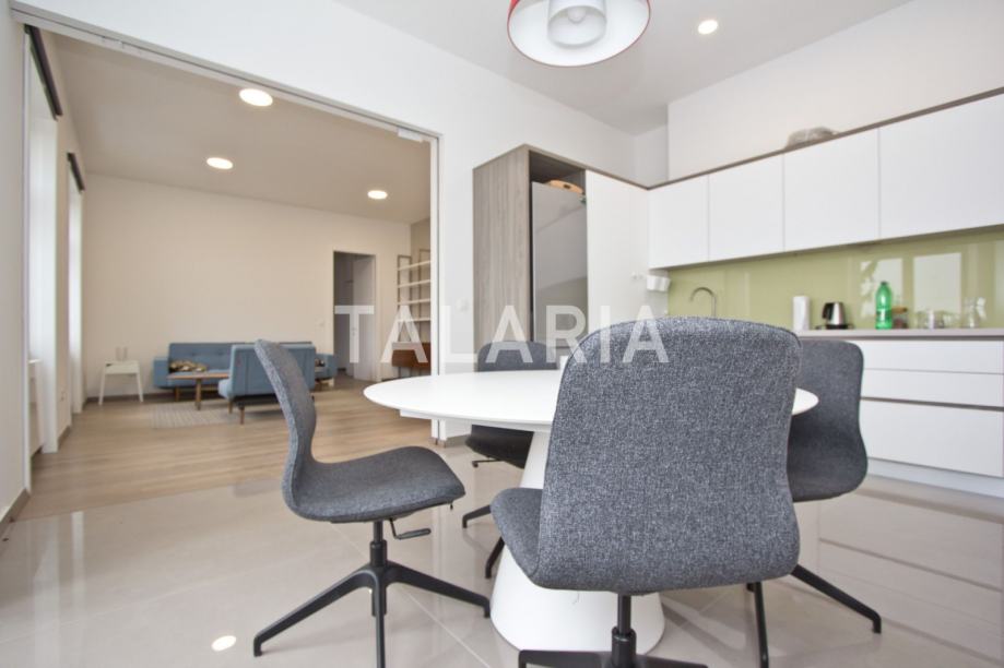 Estetski odmjeren, luksuzno opremljen, neutralnog interijera iz kojeg odiše jednostavnost i praktičnost. Trosoban stan odličnog i promišljenog tlocrta! Čine ga prostran hodnik s velikom garderobom,dupla "bogata vrata" vode prema velikom dnevnom boravku s radnim prostorom, kuhinja s blagovaonom koja se nastavlja na terasu (predivan pogled na zelenilo i katedralu), glavna spavaća soba s garderobom i lijepom kupaonom (kada) te druga spavaća s pripadajućom kupaonom (tuš). Kuhinja se po potrebi zatvara velikom staklenom kliznom stijenom. Odličan izbor za strance koji namjeravaju istraživati Zagreb i vole biti u centru svih zbivanja.