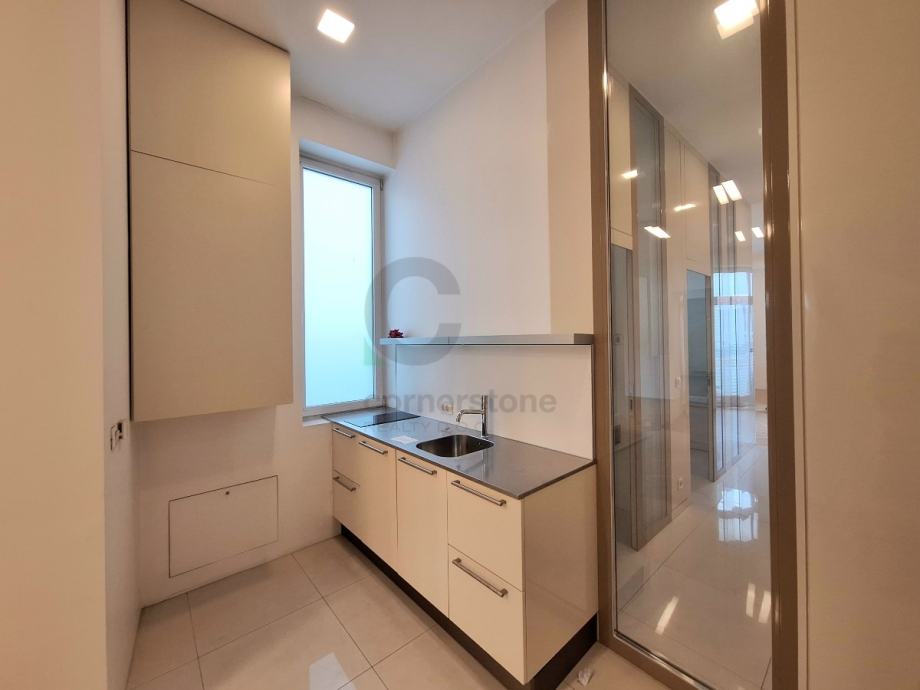 Sastoji od kuhinje, tri sobe, ulaznog hodnika, kupaonice i odvojenog toaleta, a pripadaju mu i dva balkona. Tlocrt je otvoren i nudi velik potencijal za različite koncepte uređenja – od modernog gradskog doma do uredskog odnosno poslovnog prostora.