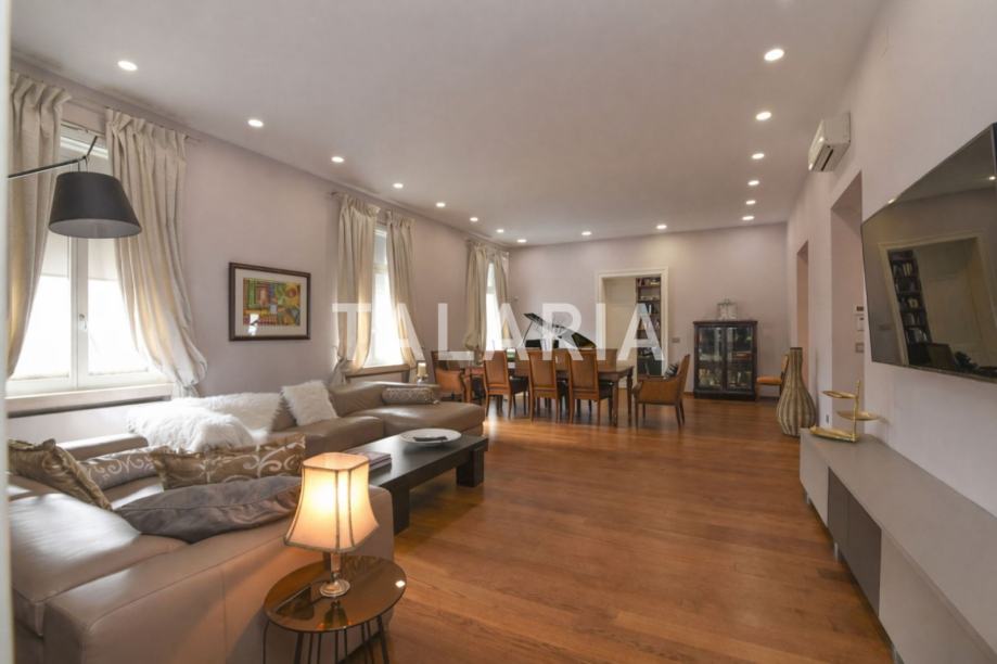 Od temelja adaptiran prije 8 godina, reprezentativan 6-sobni stan od 290 m2 u odlično održavanoj zgradi na 2. katu s 2 parkirna mjesta na najprestižnijoj adresi u gradu Zagrebu udaljenom od bana Josipa Jelačića. Stan se otvara elegantnim ulaznim prostorom koji vodi u prostrani dnevni boravak povezan s blagovaonicom, kao i u veliku, funkcionalnu kuhinju. Hodnik dalje povezuje 3 komforne spavaće sobe. Glavna spavaća soba ima zaseban ulaz iz dnevnog boravka te raspolaže vlastitom kupaonicom s kadom i tušem, kao i izdvojenom prostorijom namijenjenom garderobi. Uz blagovaonicu se nalazi dodatna soba koja može služiti kao radna ili gostinjska. Nekretnina za svaku preporuku.
