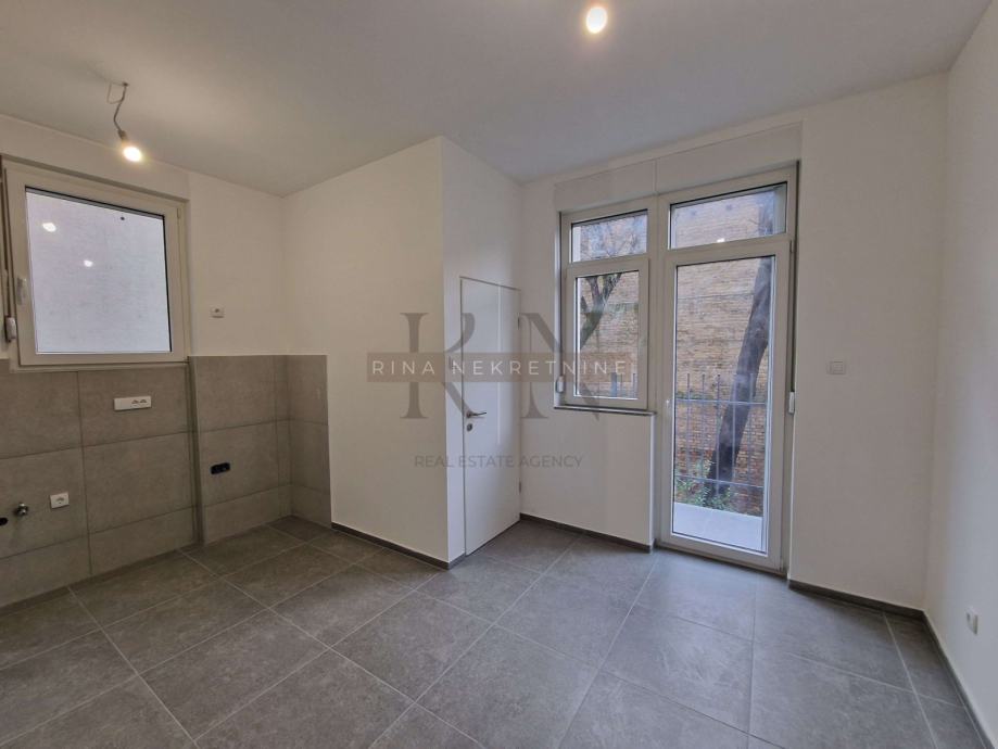 Stan se nalazi u visokom prizemlju (visina prvog kata) uredne zgrade sa širokim ulazom ,može se koristiti i u poslovne svrhe kao u ured ,s obzirom da je nekretnina prazna.