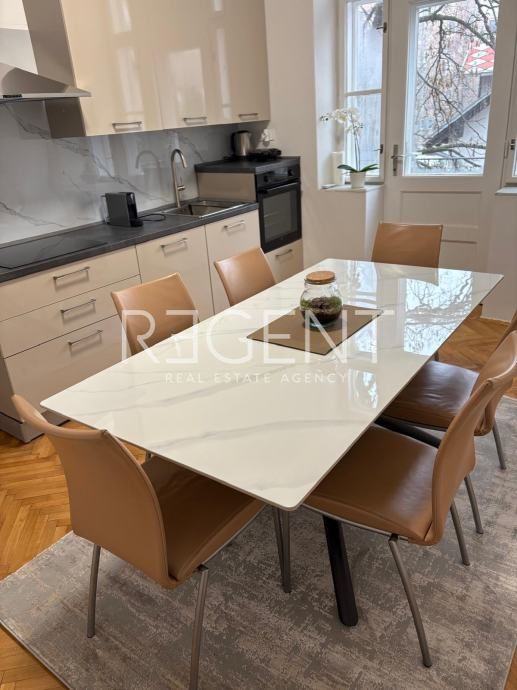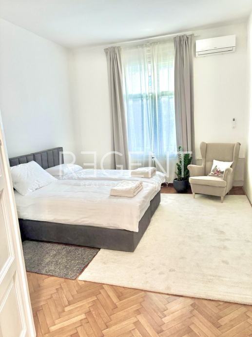 Iznajmljuje se prostran, potpuno renoviran stan površine 125 m², smješten na prvom katu stambene zgrade u strogom centru Zagreba, u Petrinjskoj ulici. Zahvaljujući iznimnoj lokaciji i velikoj kvadraturi, stan predstavlja izvrsno rješenje za dugoročni najam u samom središtu grada.Stan je nedavno u cijelosti adaptiran i potpuno novo namješten. Sastoji se od četiri spavaće sobe, dnevnog boravka, kuhinje s blagovaonicom i izlazom na balkon, kupaonice te dodatnog odvojenog WC-a. Sve spavaće sobe opremljene su novim klima uređajima. Prostor je opremljen novim namještajem i kućanskim aparatima, uključujući perilicu posuđa, dok protuprovalna vrata dodatno doprinose osjećaju sigurnosti.Lokacija stana jedna je od njegovih ključnih prednosti. Smješten u samom srcu Zagreba, omogućuje brz pristup svim važnim gradskim sadržajima poput trgovina, restorana, javnog prijevoza, poslovnih zona i kulturnih institucija, čineći ga praktičnim izborom za svakodnevni život u centru grada.Stan ima etažno plinsko centralno grijanje, priključen je na gradski plin, vodovod i kanalizaciju. Moguće je iznajmiti stan potpuno namješten ili prazan, prema dogovoru.Mjesečna cijena najma iznosi 2.000 €, PDV je uključen u cijenu, dok se režijski troškovi plaćaju zasebno.Za više informacija ili dogovor oko razgledavnja, slobodno nas kontaktirajte!Za više informacija, kontaktirajte našeg agenta na brojeve telefona: