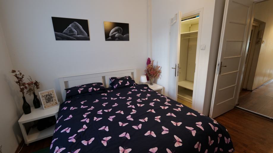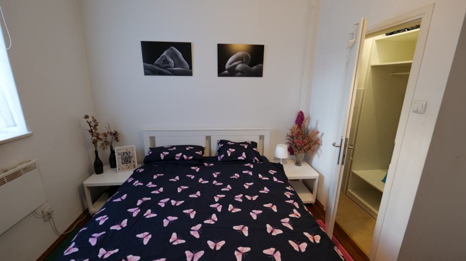 Ovaj udoban stan nalazi se u prizemlju nedavno obnovljene stambene zgrade, ima funkcionalan raspored prostorija i opremljen je sa svim sadržajima potrebnim za ugodan boravak. Sastoji se od ulaznog predsoblja sa odvojenim spremišnim prostorom (koje je pogodno i za odlaganje bicikala), hodnika, opremljene kuhinje, kupaone sa tuš kabinom i toaletom, velike dnevne sobe sa kutnom garniturom na razvlačenje i spavaće sobe sa zasebnim garderobnim prostorom. Stan je opremljen sa televizorom, kombiniranim hladnjakom sa zamrzivačem, štednjakom sa pećnicom, mikrovalnom pećnicom, kuhinjskim priborom, perilicom rublja, sušilicom rublja i protuprovalnim ulaznim vratima. Za grijanje su ugrađeni električni radijatori opremljeni termostatima koji omogućuju ekonomičnu potrošnju energije i ujednačenu temperaturu prostora.