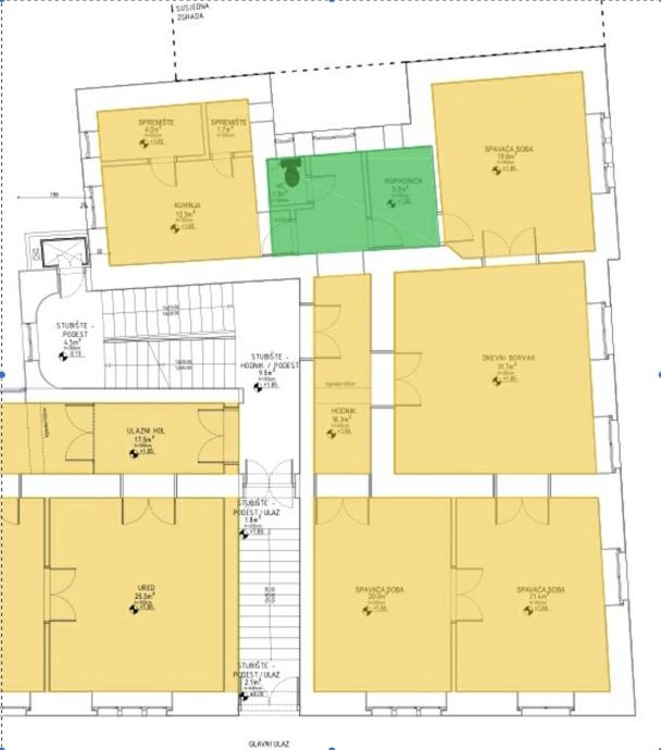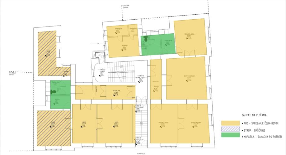 Zgrada je u kompletnoj adaptaciji, ojačana armirano betonski, nova fasada, ojačanje od potresa razina 3.