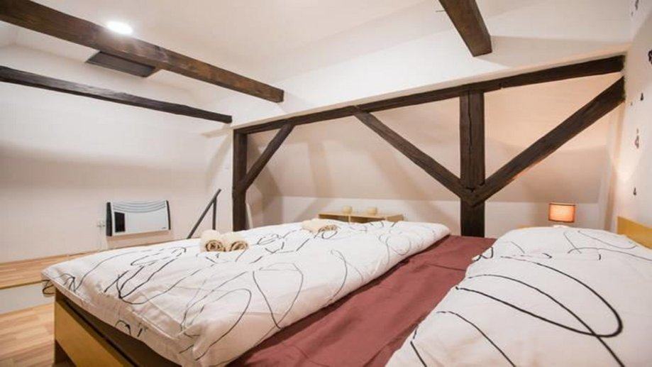 Sastoji se od kuhinje, blagovaonice, kupaonice, dnevnog boravka s trosjedom na razvlačenje te sobe s velikim bračnim krevetom u potkrovlju.
