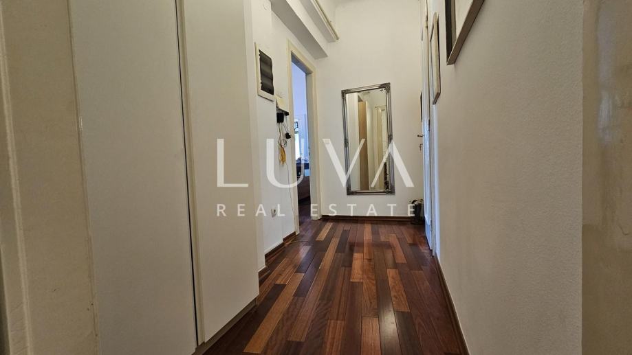 Sastoji se prostranog dnevnog boravka, kuhinje s blagovaonicom, tri spavaće sobe, dva toaleta, dva balkona, hodnika i špajze, a nalazi se na četvrtom katu iznimno održavane zgrade s liftom.