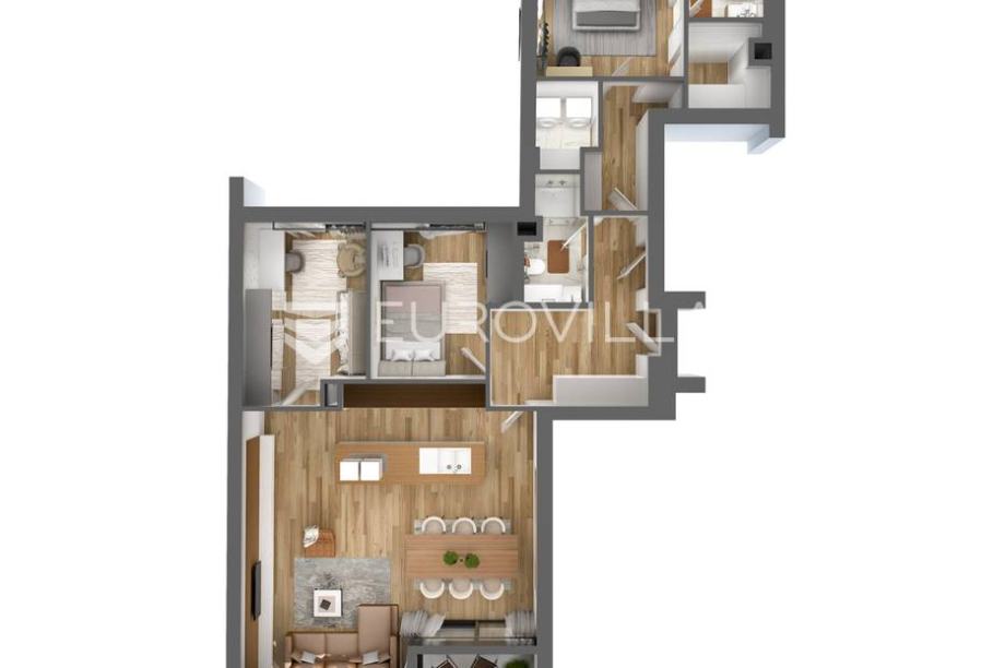 Centar, novogradnja, uređen četverosoban stan zatvorene površine 101,10 m2 na prvom katu s liftom novije građene zgrade.Sastoji se od ulaznog hodnika, open space dnevnog boravka s blagovaonicom i kuhinjom, tri spavaće sobe, dvije kupaonice, gostinjskog toaleta, vešeraja te loggie 6,80 m2...Za ovu nekretninu kontaktirajte agenticu na broj telefona +385 99 451 7248.Više na Eurovilla.hr, ID: 389132Direktan link: https://eurovilla.hr/nekretnina/zagreb-centar-luksuzan-cetverosoban-stan-nkp-10620-m2/389132/-----Center, new building, furnished three bedroom apartment of 101.10 m2 on the first floor with an elevator of a newly built building. It consists of an entrance hall, open space living room with dining area and kitchen, three bedrooms, two bathrooms, guest toilet, laundry room and a loggia of 6,80 m2... For this property contact our agent on telephone number +385 99 451 7248.More on Eurovilla.hr, ID: 389132Direct link: https://eurovilla.hr/en/property/zagreb-center-luxury-three-bedroom-apartment-nkp-10620-m2/389132/...