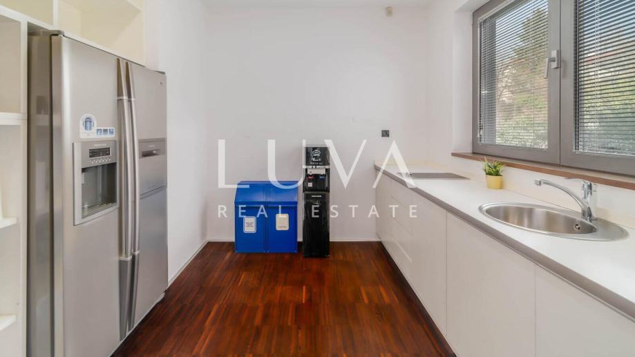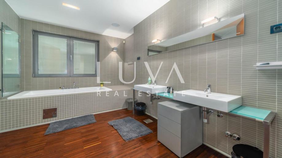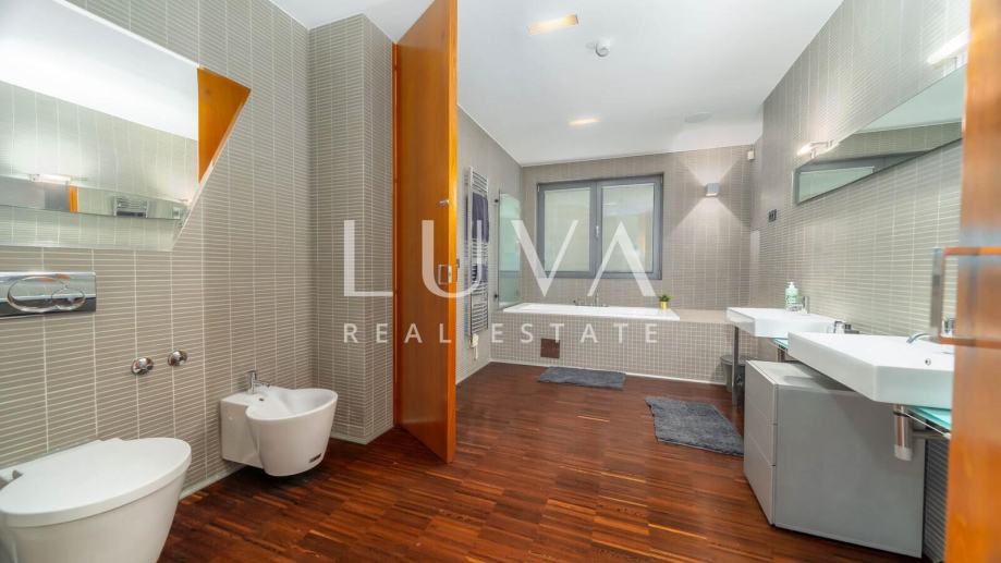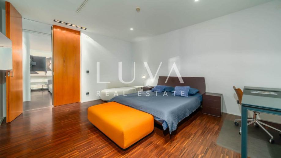 Najgornja etaža stana rezervirana je za potpuno opuštanje. Tamo se nalazi elegantan unutarnji jacuzzi te prostrana terasa koja postaje prava gradska oaza – opremljena saunom, prostorom za sunčanje i mjestom za uživanje u pogledu koji oduzima dah. Ovaj ekskluzivan stan nudi ne samo luksuzan gradski život već i elemente privatnog wellnessa u vlastitom domu, što ga čini savršenom prilikom za one koji traže izuzetnu nekretninu u centru grada.