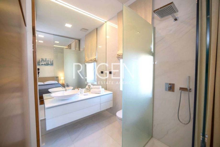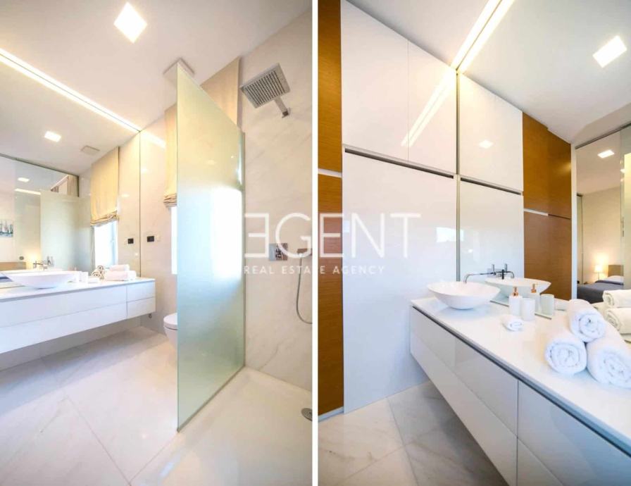 Sastoji se od: dvije spavaće sobe, dvije kupaonice, dnevnog boravka s kuhinjom i blagovaonicom. Grijanje i hađenje: dizalica topline ( topla voda, grijanje, klimatizacija).