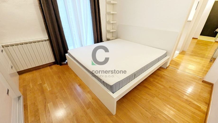 Zagreb, Centar - predivan stan od 90 m2, u mirnom djelu Martićeve ulice, impozantnom kompleksu poznatom pod imenom “Mali Vatikan”. Sastoji se od open space dnevnog boravka s blagovaonicom i lođom, kuhinje, manje dječje/radne sobe, glavne spavaće sobe s kupaonicom, walk inormarom i balkonom.