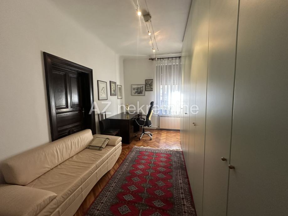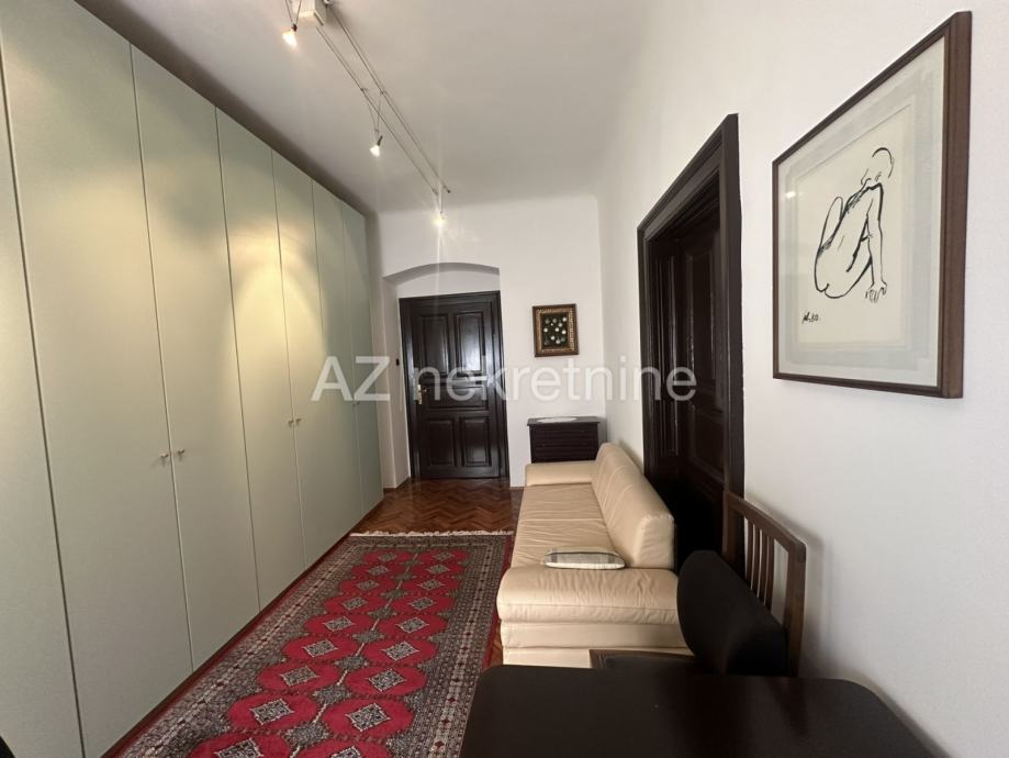 U blizini Britanskog trga iznajmljuje se 3-soban stan zapadno/južne orijentacije na drugom katu zgrade. Zgrada je obnovljena i vrlo dobrom stanju.