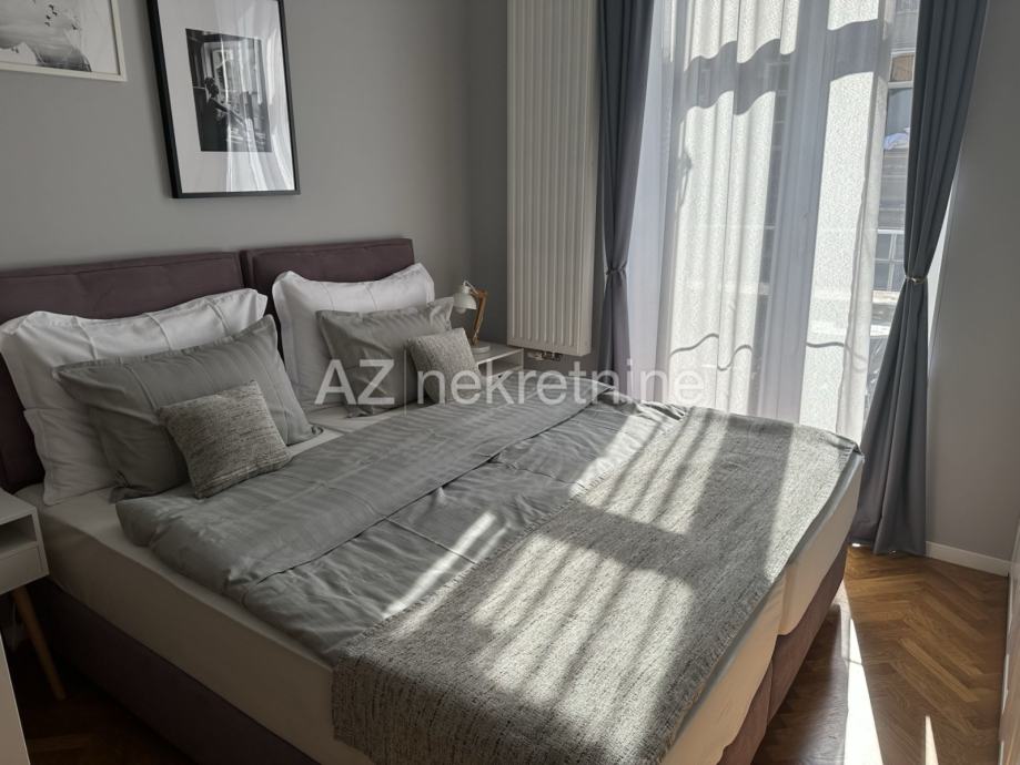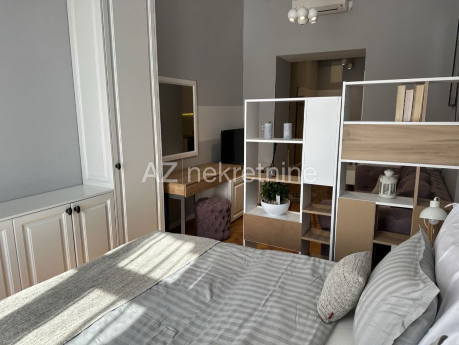 Na odličnoj lokaciji u blizini Britanskog trga, nadomak svim sadržajima grada i svega 10 minuta hoda do Trga Bana Jelačića, daje se u najam opremljena garsonijera orijentacije prema jugu. Sastoji se od ulaza, otvorenog dnevnog boravka i spavaćeg dijela, kuhinje i kupaonice.