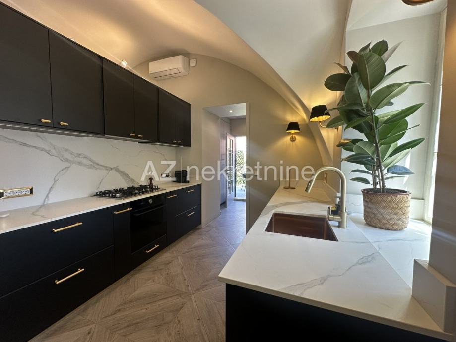 U stanu je pomno biran svaki detalj, a prekrasna terasa u zelenilu u samom centru grada uz romantičan ambijent stana