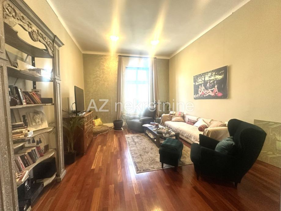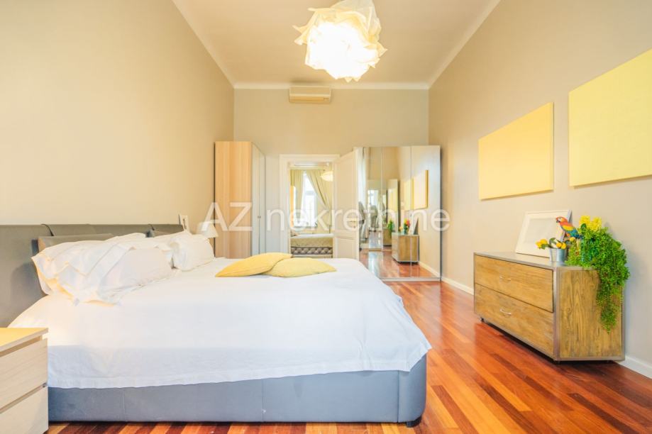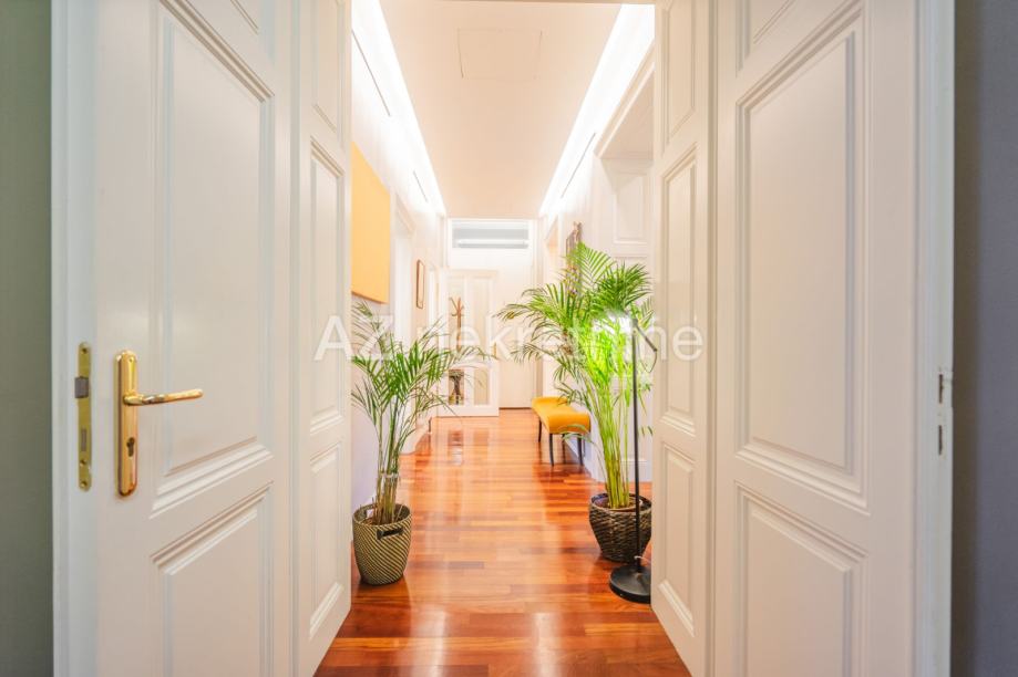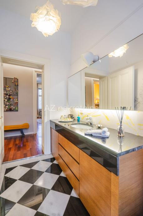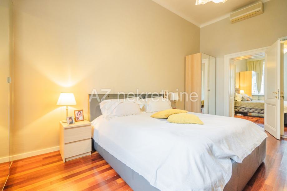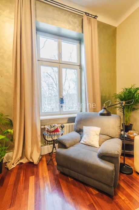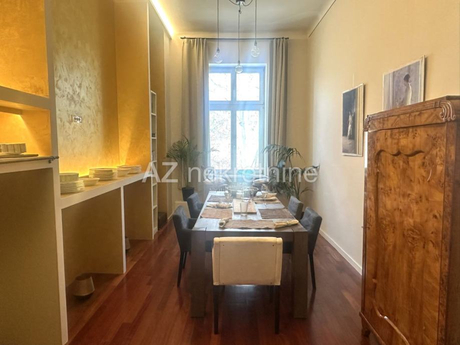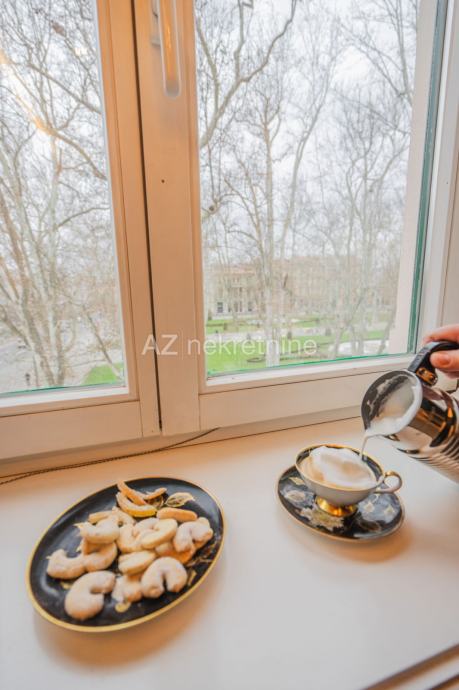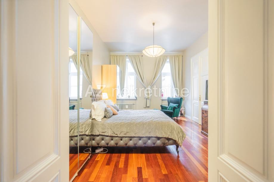 Iznajmljuje se luksuzan četverosoban stan smješten u palači na Zrinjevcu sa pogledom na park i i parkirnim mjestom u dvorištu.