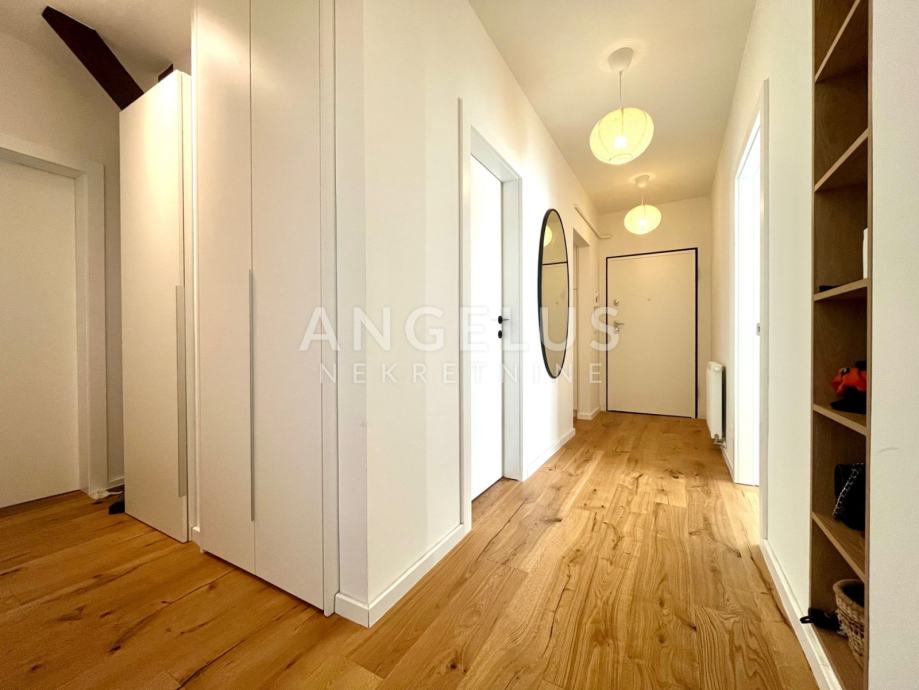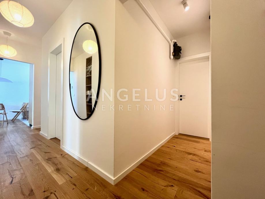Novoadaptiran i uređen stan sastoji se od ulaznog hodnika, iz kojeg je pristup u gotovo sve prostorije u stanu , tri spavaće sobe različitih površina od kojih je jedna orjentirana na jug, a druge dvije na sjever, kupaonice s "walk-in" tušem i jednim velikim prostorom u kojem je smještena kompletno opremljena kuhinja, blagovaonica i dnevni boravak s izlazom na veliku terasu s koje se pruža lijepi pogled na okolne ulice i zelenilo.
