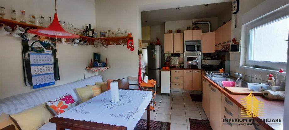 - Kuhinja – potpuno opremljena, s dovoljno prostora za svakodnevne aktivnosti, a u prizemlju se nalazi i kupaonica s toaletom, što dodatno olakšava funkcionalnost kuće.