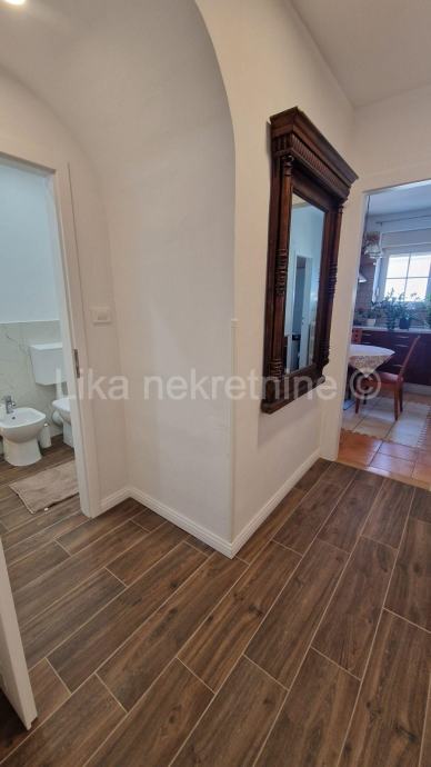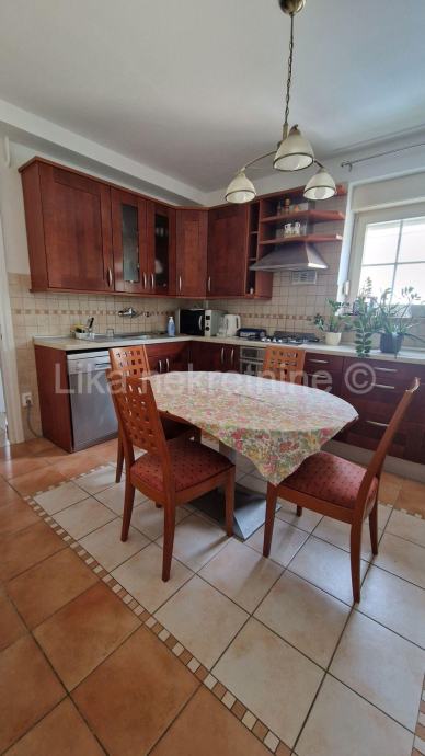Sastoji se od predsoblja, boravka, dvije veće sobe, balkona, kupaonice sa tušem i toaletom, namještene i opremljene kuhinje(suđerica također), špajze, još jedne manje spavaće sobe i još jedne kupaonice sa kadom.