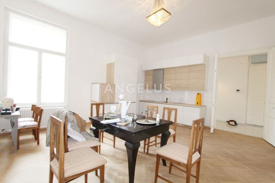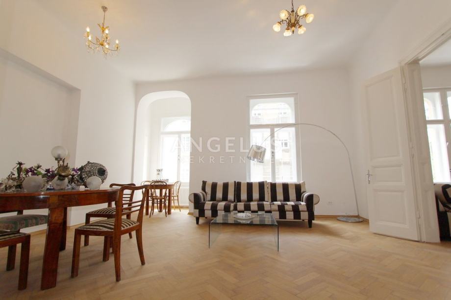 Predivni građanski stan površine 130 m2, nalazi se na 1. katu odlično održavane zgrade. 800 m od Trga bana Josipa Jelačića, u neposrednoj blizini svih sadržaja. Javni naplatni parking dostupan je u okolnim ulicama i obližnjim javnim garažama.