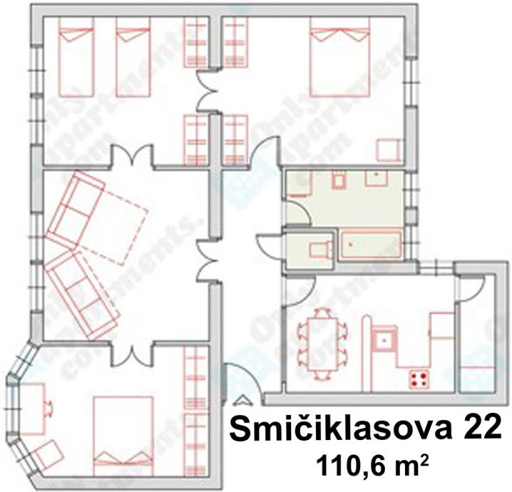 Zagreb - centar ( Smičiklasova ulica ) iza HNBa, 4-sobni stan površine 111m2 na 3.katu zgrade s liftom. Stan je uređen i namješten za iznajmljivanje, a obzirom na poziciju pogodan je i za odvjetničku kancelariju ili sličnu djelatnost. Sastoji se od ulaznog hodnika, kuhinje s blagovaonicom, dnevnog boravka, 3 spavaće sobe, kupaonice i odvojenog toaleta. Iz kuhinje je izlaz na balkon, a stanu pripada i podrumsko spremište. Zgrada je sagrađena 1923. godine, ali je stan obnovljen i redovito održavan. Smještajem u samom centru grada nalazi se u blizini svih dnevno potrebnih sadržaja ( javni prijevoz - tramvaj, osnovne i srednje škole, vrtića, banaka, pošte, trgovačkog centra, doma zdravlja i bolnice, ugostiteljskih objekata....). Vlasništvo je uredno pa je moguće stan kupiti i kreditom banaka.