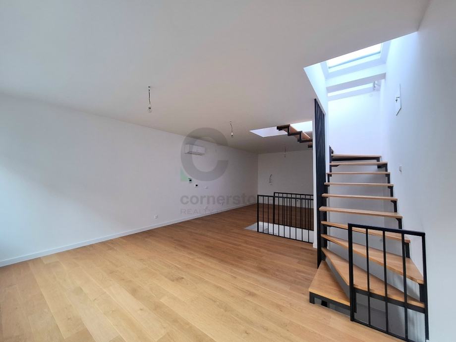 Stan je dvoetažni i sastoji se od ulaznog prostora, tri spavaće sobe, kupaonice s toaletom i prostorije predviđene za vešeraj na donjoj etaži. Na gornjoj etaži nalazi se prostrani open space dnevni boravak s kuhinjom, kupaonica s toaletom te stepenište koje vodi na krovnu terasu (bruto 28,93 m2).