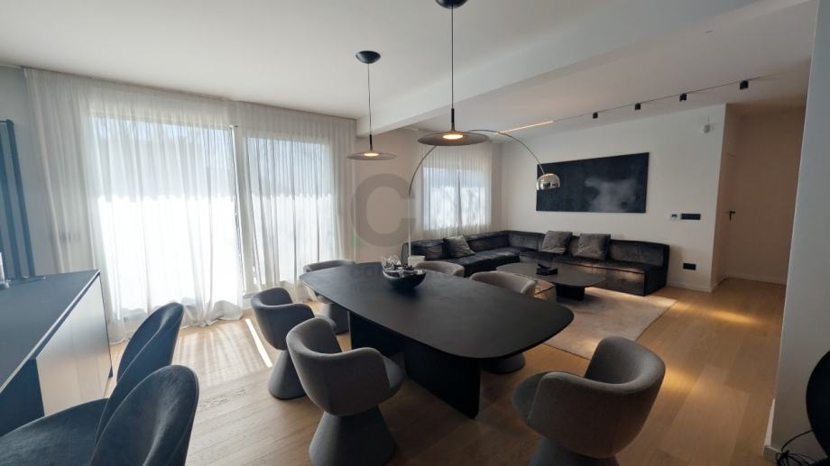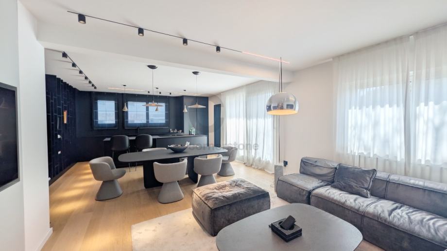 Zagreb, Centar, Srebrnjak - stan od 151,63 m2, kojem pripadaju garaža i vanjsko parkirno mjesto. Sastoji se od raskošnog open space dnevnog boravka s kuhinjom i blagovaonicom i izlazom na terasu, dvije velike spavaće sobe (od kojih jedna ima izlaz na veliki balkon), dvije kupaonice (obje s toaletom, jedna s walk in tušem, a druga s kadom i saunom), odvojene tehničke sobe/vešeraja i ulaznog prostora. Manjom preinakom jedna se spavaća soba može pretvoriti u dvije, svaka sa svojim izlazom na balkon. Stolarija je alu/pvc, grijanje centralno etažno plinsko, a orijentacija na sve četiri strane svijeta. Prije dvije godine stan je u potpunosti adaptiran, uređen, namješten vrhunskim namještajem i aparatima i kao takav je dostupan za najam. Energetski razred je B. Vrata su protuprovalna, stan je opremljen video portafonom i alarmnim sustavom.