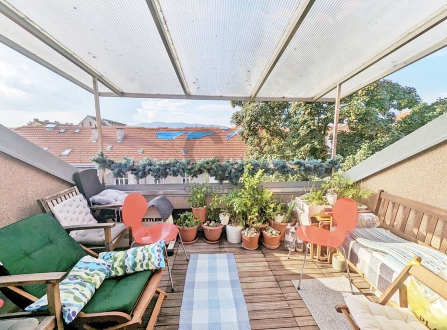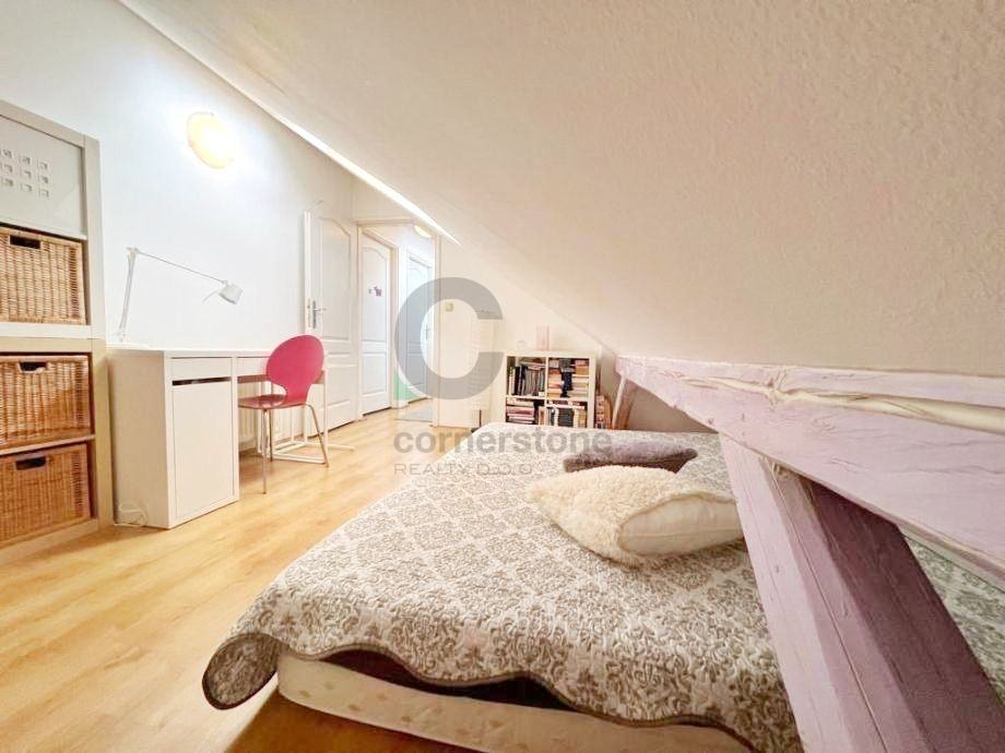 Zagreb, Centar – luksuzan, dvoetažni stan od 162 m2. Sastoji se od 4 spavaće sobe, raskošnog dnevnog boravka sa blagovaonicom i kuhinjom, dvije kupaonice (obje s toaletom), spremišta, hodnika i terase, s koje se pruža divan pogled na Medvednicu. Orijentacija stana je dvostrana, na sjeveri na jug.