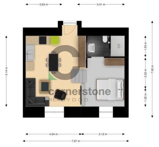 Zagreb, Centar – stan od 50 m2, koji se nalazi u razizemlju zgrade. Sastoji se od open space dnevnog boravka s blagovaonicom i kuhinjom, spavaće sobe, kupaonice s tuš kabinom i toaletom. Cijeli je stan u potpunosti adaptiran 2022., namješten je i kao takav je na prodaju. Grijanje je centralno etažno plinsko (Google Nest), stan je opremljen i klima uređajem (svi su aparati s garancijama, od prošle godine), protuprovalna vrata imaju mogućnost ‘pametnog’ otključavanja (putem aplikacije). Visina stropova od 3,4 metra pruža stanaru dodatan osjećaj prostranosti. Stanu pripadaju i dvije ostave, od kojih je jedna vrlo lako iskoristiva za dodanu investiciju odnosno zaradu.
