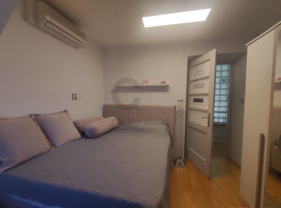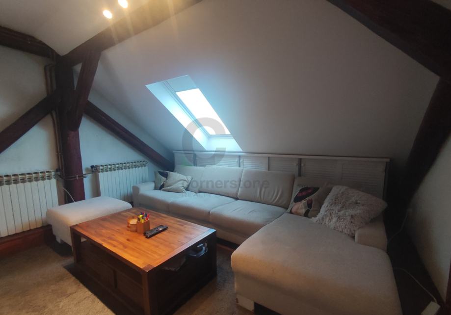 Zagreb, Centar - stan od 94 m2. Sastoji se od open space dnevnog boravka s blagovaonicom, kuhinjom, tri spavaće sobe i hodnika. Stan ima i izlaz na terasu (kosi krov) cca 50m2. Grijanje je centralno etažno plinsko, a opremljen je i klima uređajem. Stan je renoviran u potpunosti 2019. godine. Na prodaju je namješten.