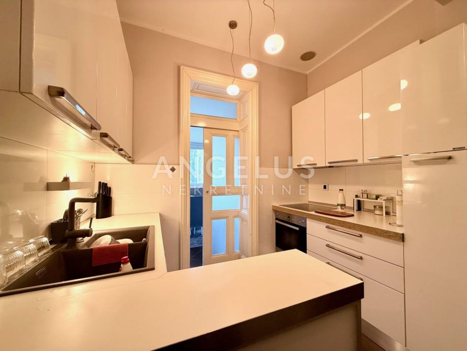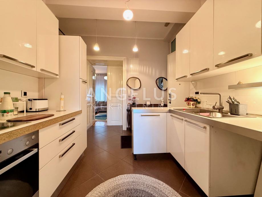 Renovirani stan površine 103 m2, nalazi se u centru grada, u neposrednoj blizini svih sadržaja. Javni parking dostupan je ispred zgrade ili u obližnjim javnim garažama (Sheraton, Branimir centar, Importanne centar).