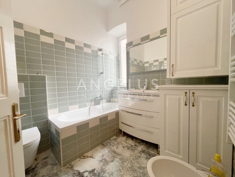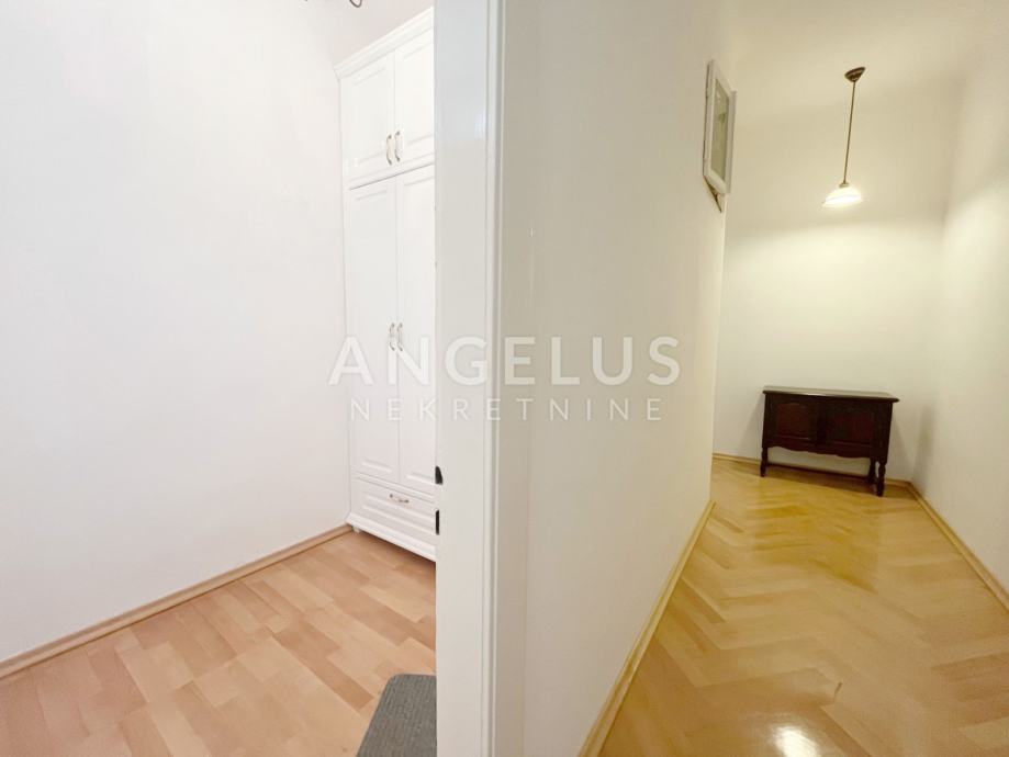 Stan je kompletno renoviran, a sastoji se od: ulaznog hodnika, garderobe, kupaonice, blagovaonice, radne sobe, dnevne sobe, dvije spavaće sobe, kupaonice, toaleta i balkona. Namješten je, plinsko centralno grijanje.