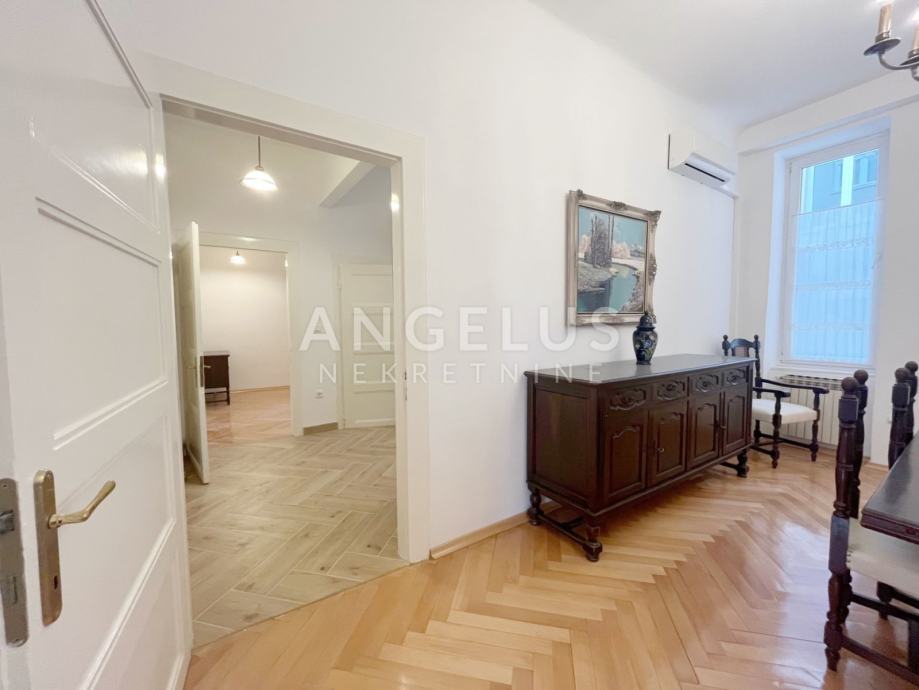 Stan, površine 146 m2, na prvom katu dobro održavane zgrade bez lifta, nalazi se u samom centru grada, cca. 500 m2 od glavnog zagrebačkog trga. Javni naplatni parking ispred zgarde i garaži Importanne.