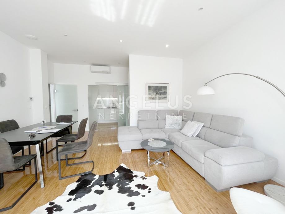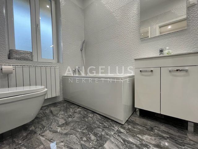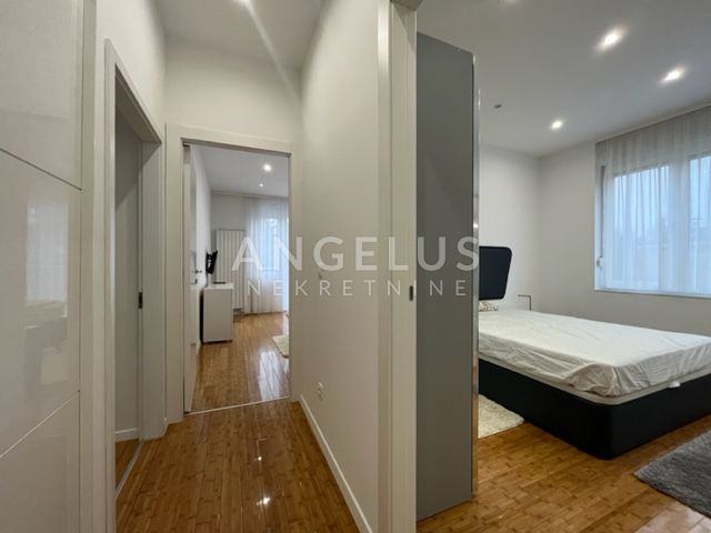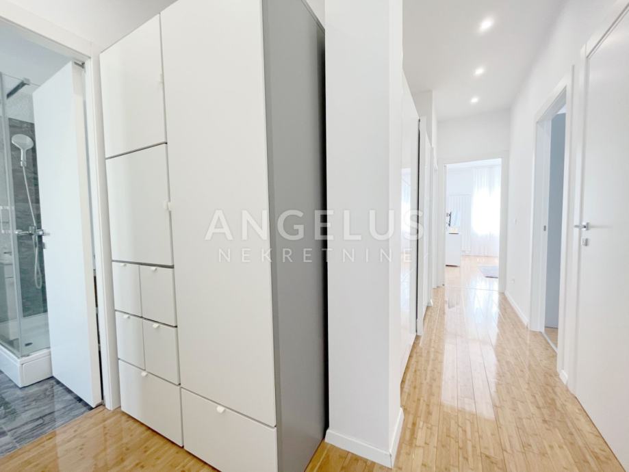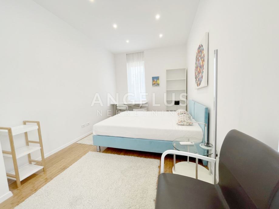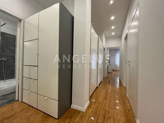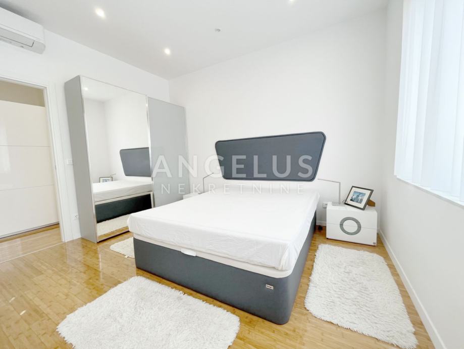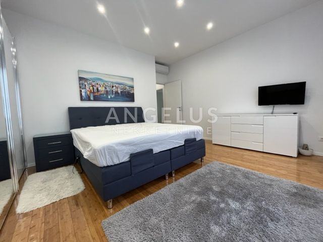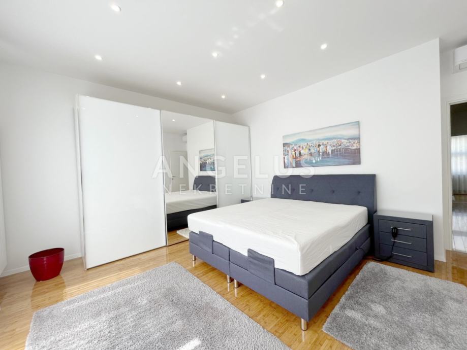 Namješteni stan (stambene površine 115 m2) koji se nalazi se na 3. katu zgrade sa liftom, a sastoji se od ulaznog hodnika sa ugradbenim ormarom, velikog dnevnog boravka sa izlazom na terasu, glavne spavaće sobe sa svojom kupaonicom, dodatne dvije spavaće sobe, kupaonice, gostinjskog toaleta, ostave i kuhinje. Plinsko centralno grijanje, klimatizirano. Pripada mu i garaža.