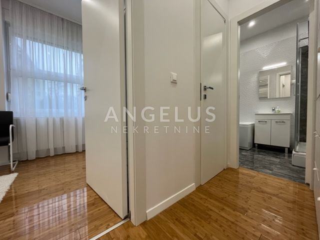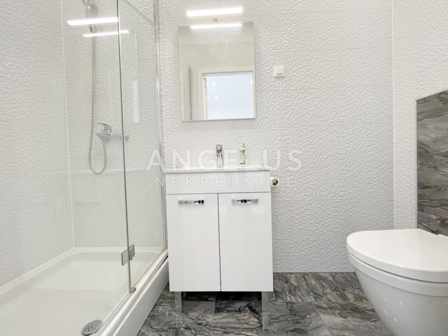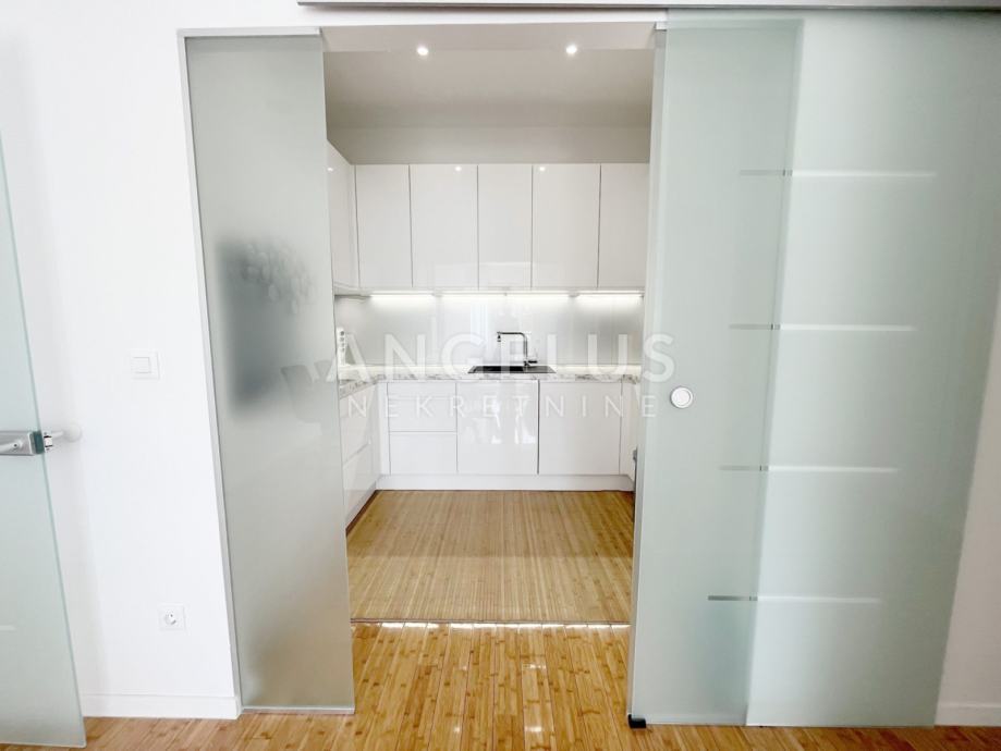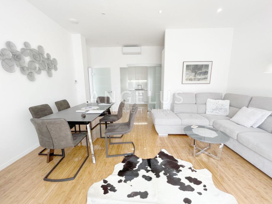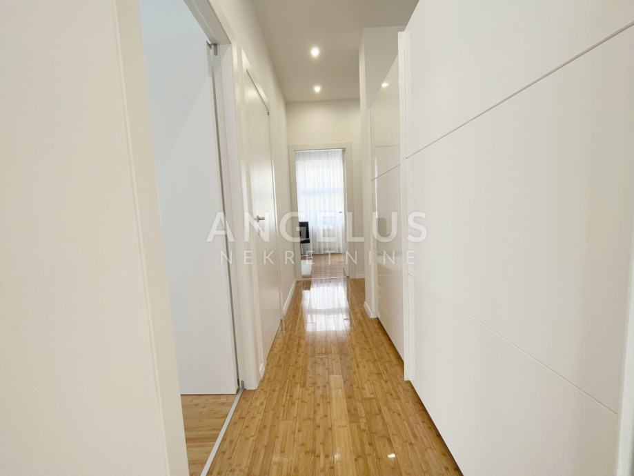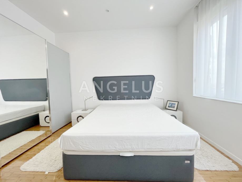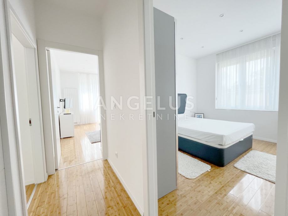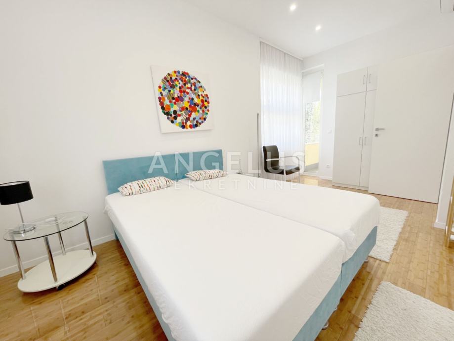Namješteni stan (stambene površine 115 m2) koji se nalazi se na 3. katu zgrade sa liftom, a sastoji se od ulaznog hodnika sa ugradbenim ormarom, velikog dnevnog boravka sa izlazom na terasu, glavne spavaće sobe sa svojom kupaonicom, dodatne dvije spavaće sobe, kupaonice, gostinjskog toaleta, ostave i kuhinje. Plinsko centralno grijanje, klimatizirano. Pripada mu i garaža.