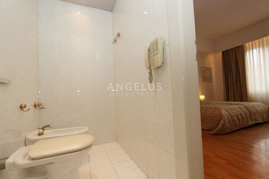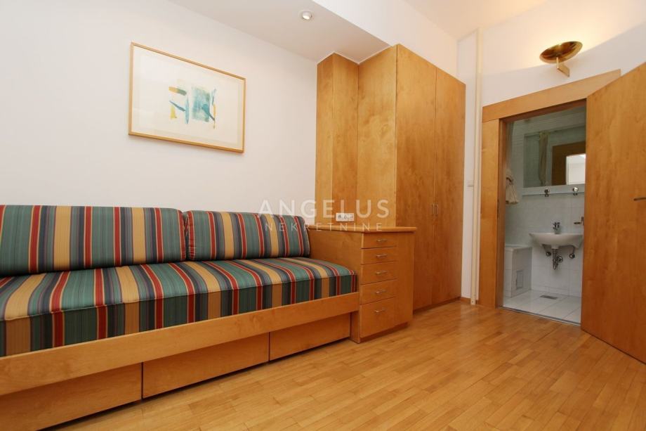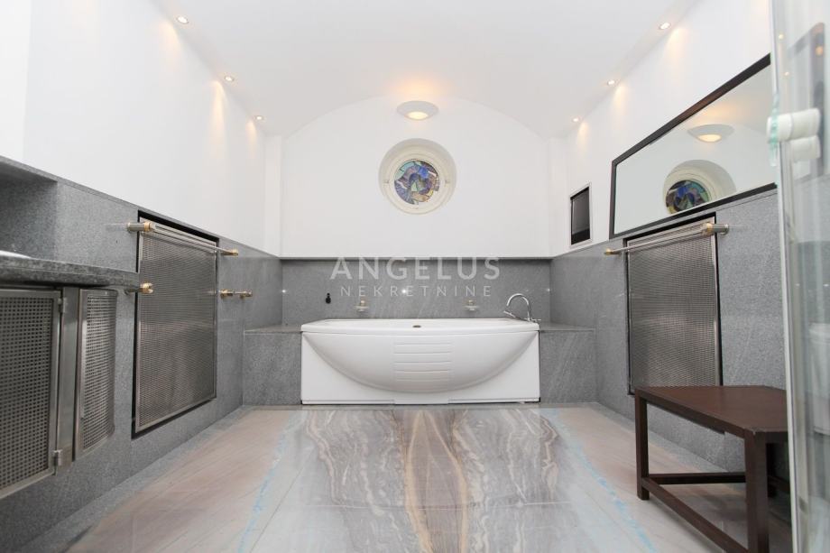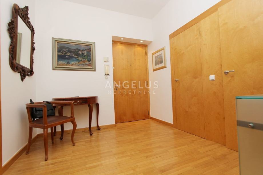 Smješten je na četvrtom katu zgrade sa liftom i sastoji se od: ulaznog prostora, glavne spavaće sobe sa kupaonicom i garderobom, gostinjske sobe sa kupaonicom, toaleta, kuhinje sa blagovaonicom i izlazom na lođu, te prostranog dvebnog boravka. Potpuno je namješten i ima saunu i i Jacuzzi.