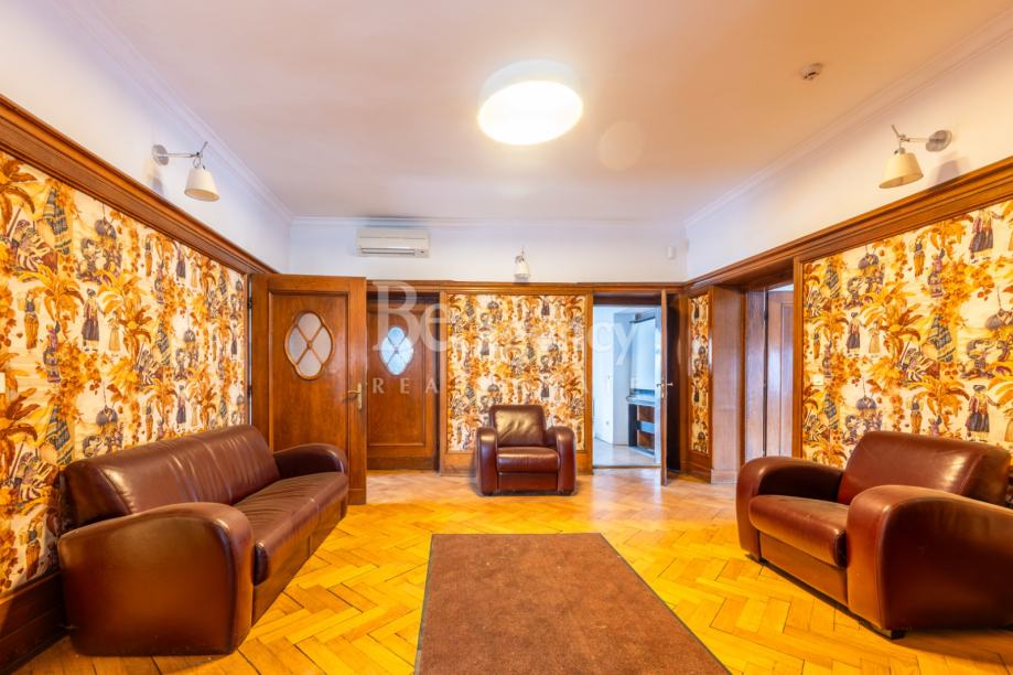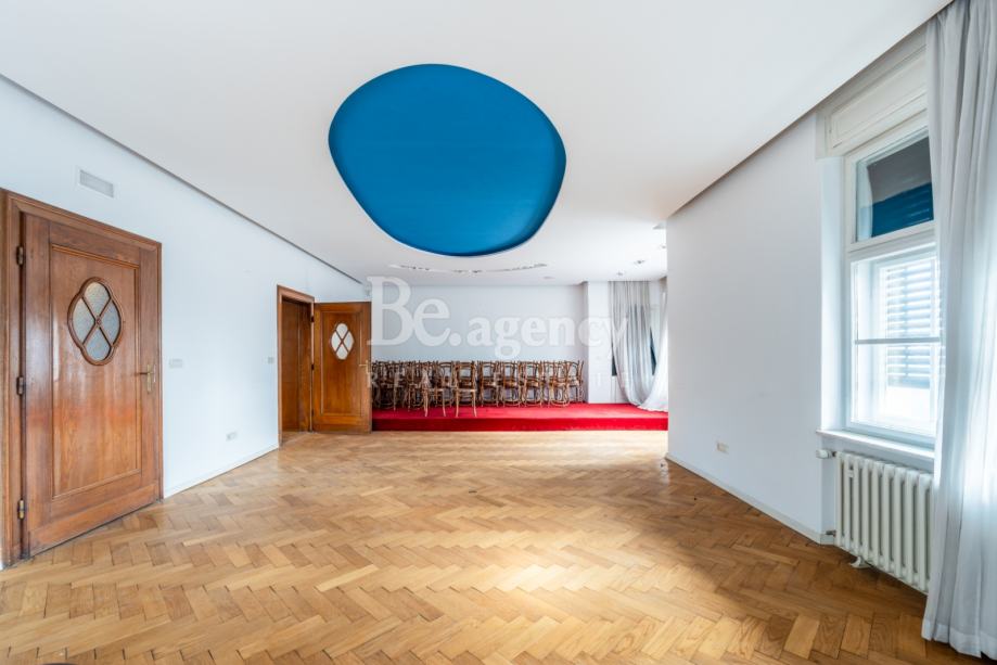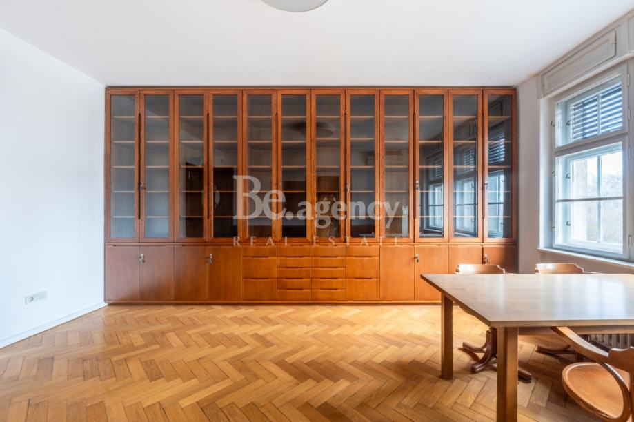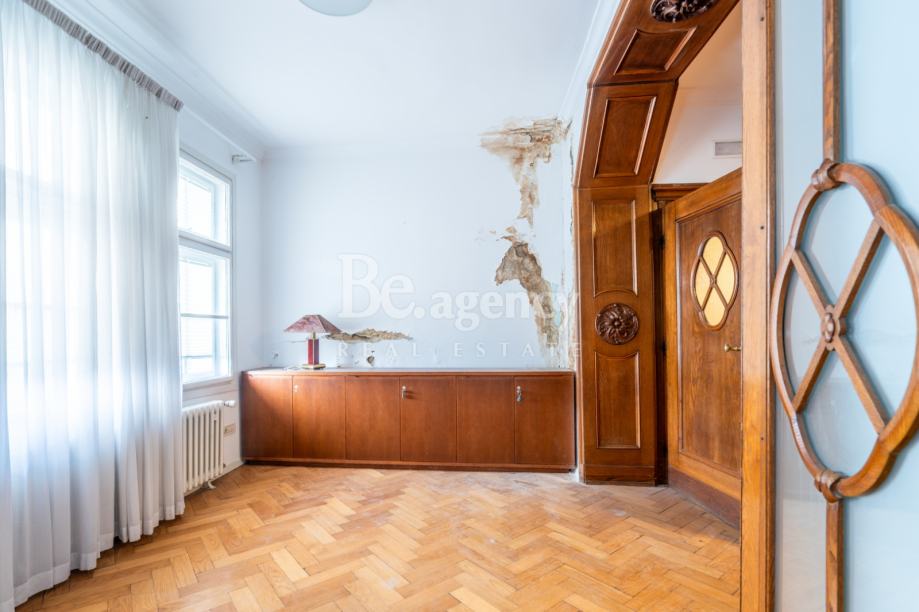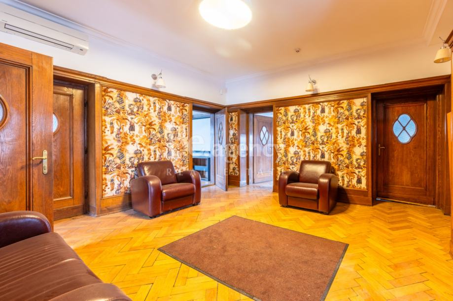 Na jednoj od najtraženijih lokacija u Zagrebu, Tuškanac, u mirnoj ulici okruženoj zelenilom, prodaje se prostran i jedinstven stan površine 176 m² smješten na 1. katu manje ville.