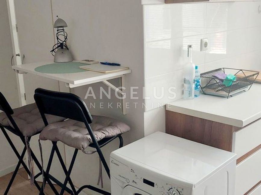 OPIS : Mali stan na iznimnoj lokaciji idealan je kao dugoročna, uvijek isplativa investicija. Trenutno je stan u najmu za 500E mjesečno, te se najmoprimac može po dogovoru preuzesti. Stan - studio se nalazi u dvorišnoj zgradi na prvom katu, pripada mu i mala terasa kao i spremište od 6m2 u prizemlju. Stan ima i zajednički prostor za bicikle kao i mali unutarnji vrt-dvorište. Stan je potpuno opremljen i namještaj je nov. U stanu se nalazi potpuno novi krevet dimenzija 140 × 200cm s unutarnjim spremištem, veliki TV i optički internet, mašina za pranje odjeće, mala funkcionalna kuhinja te odvojena kupaonica s tušem.