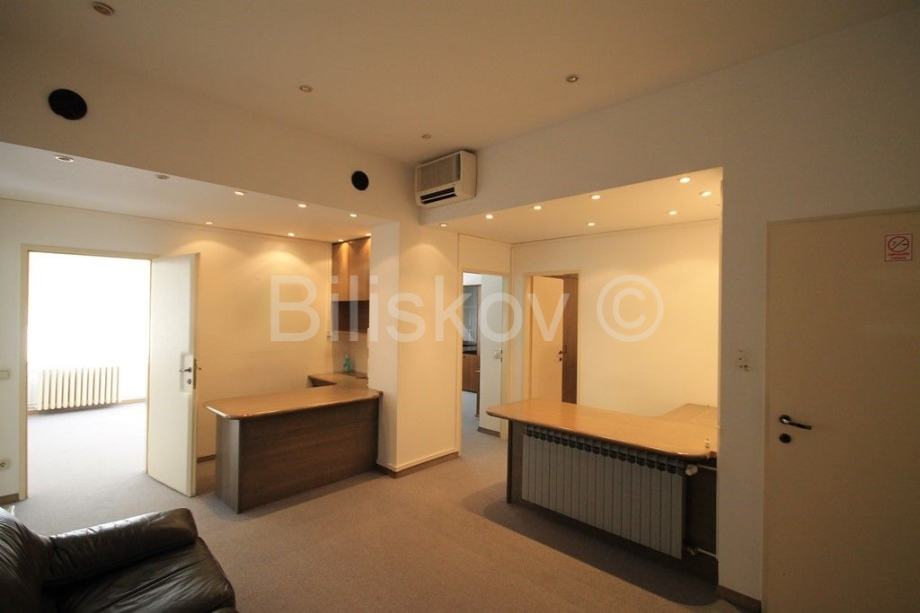 Prostor se sastoji od: halla, 6 soba, WC-a i male čajne kuhinjice. Ured je djelomično namješten, ali će do najma biti kompletno namješten uredskim namještajem po mjeri. Visina stropova je 3m. U stanu je sva infrastruktura potrebna za ured. Stubište je održavano i uredno.