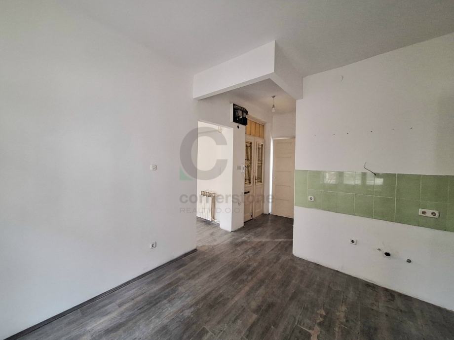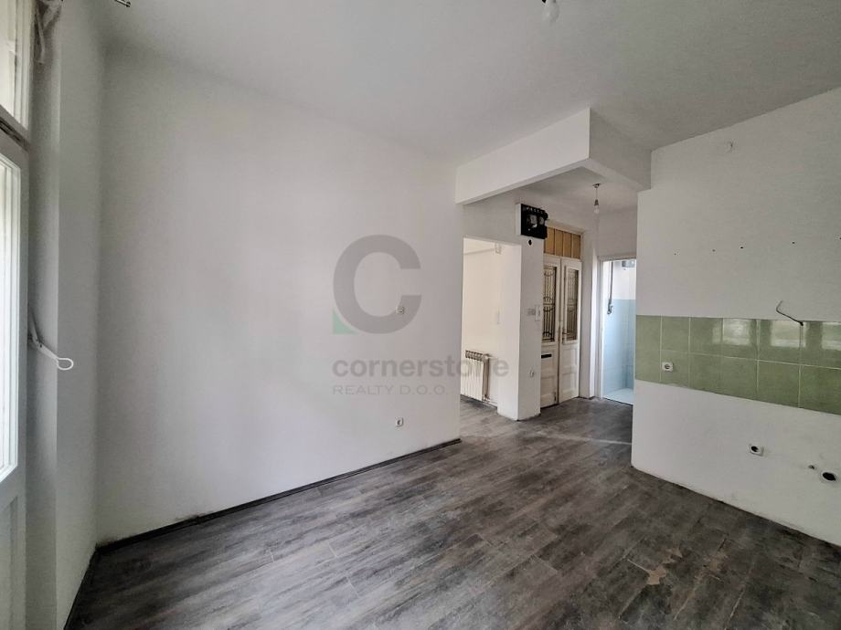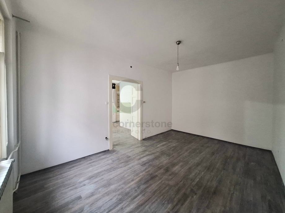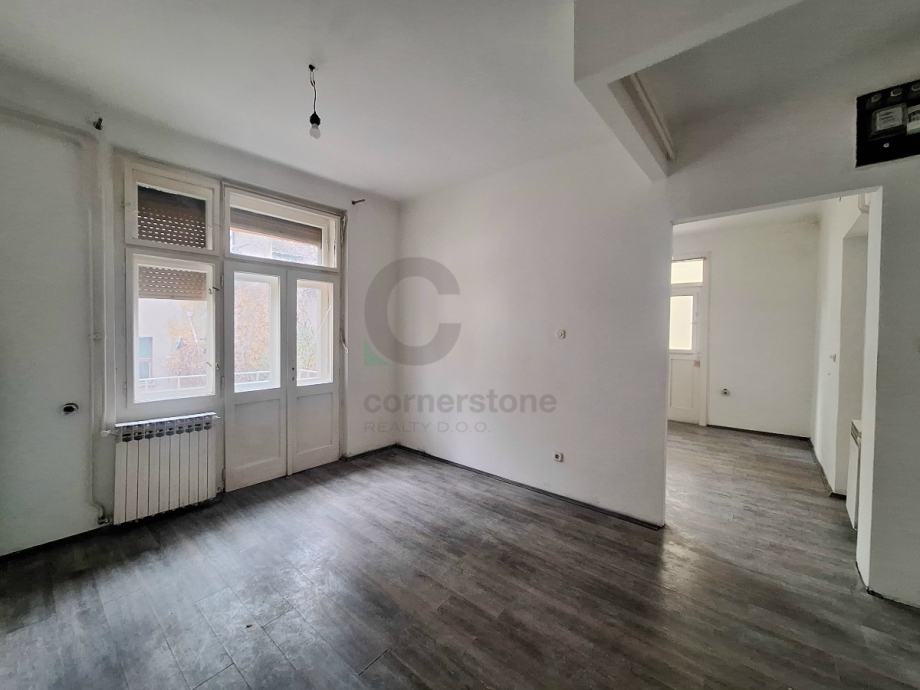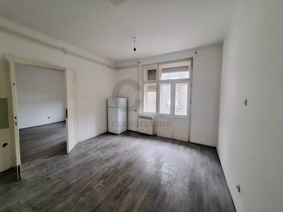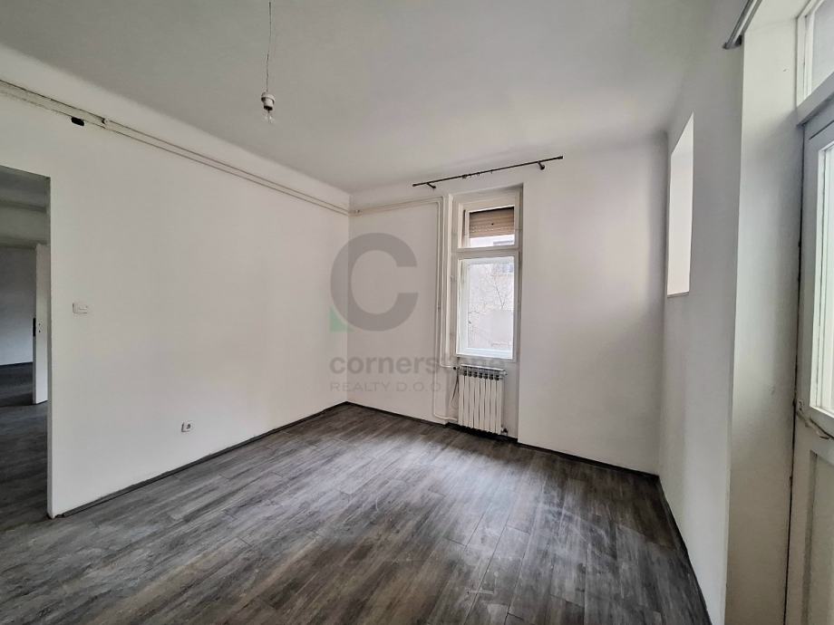 Sastoji se od ulaznog prostora, dvije veće i jedne manje međusobno povezane prostorije, kupaonice i odvojenog toaleta. Stan ima dva balkona, visoke stropove i vrlo ugodan, prozračan osjećaj prostora. Zahvaljujući otvorenom tlocrtu, nudi odličan potencijal za prilagodbu i reorganizaciju prilikom adaptacije.