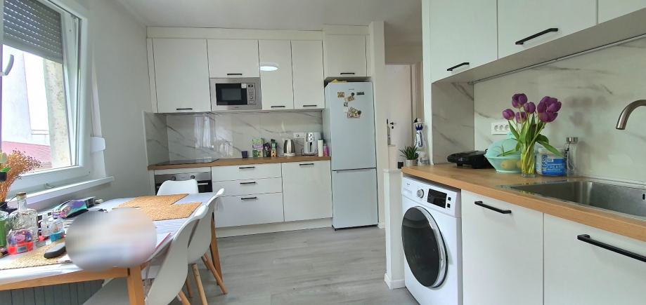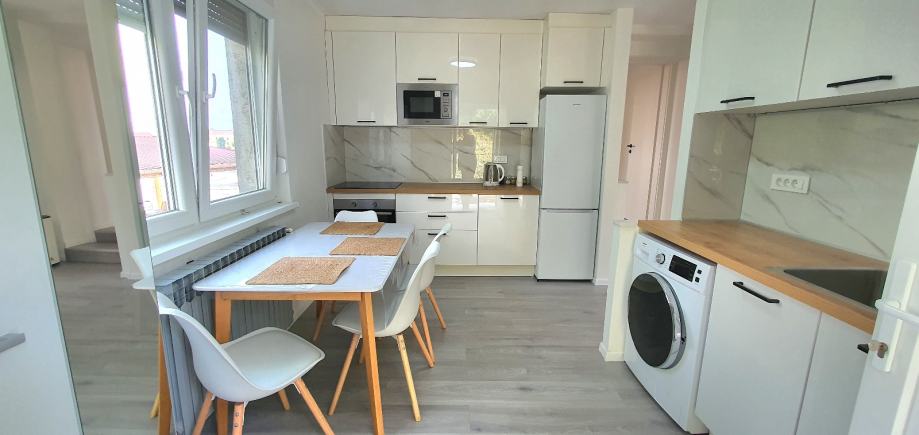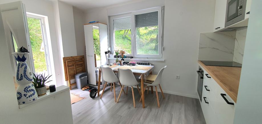 Četverosobni stan je trenutno djelomično renoviran, odnosno pretvoren je u dvije stambene jedinice sa zasebnim ulazima.