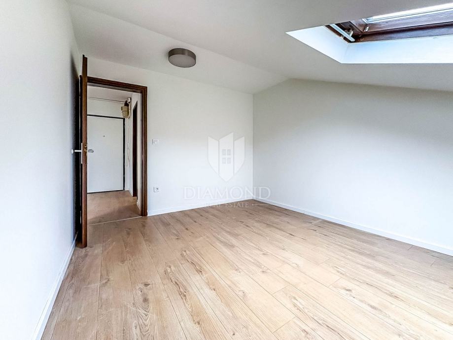 Prodaje se svijetao i funkcionalan dvosoban stan smješten u potkrovlju stambene zgrade na odličnoj lokaciji na Ilici – Črnomerec / Kustošija. Stan ima ukupnu podnu površinu od 47 m², dok zbog kosina neto korisna površina iznosi 36,24 m², što je vidljivo u vlasničkoj dokumentaciji.