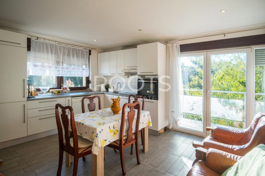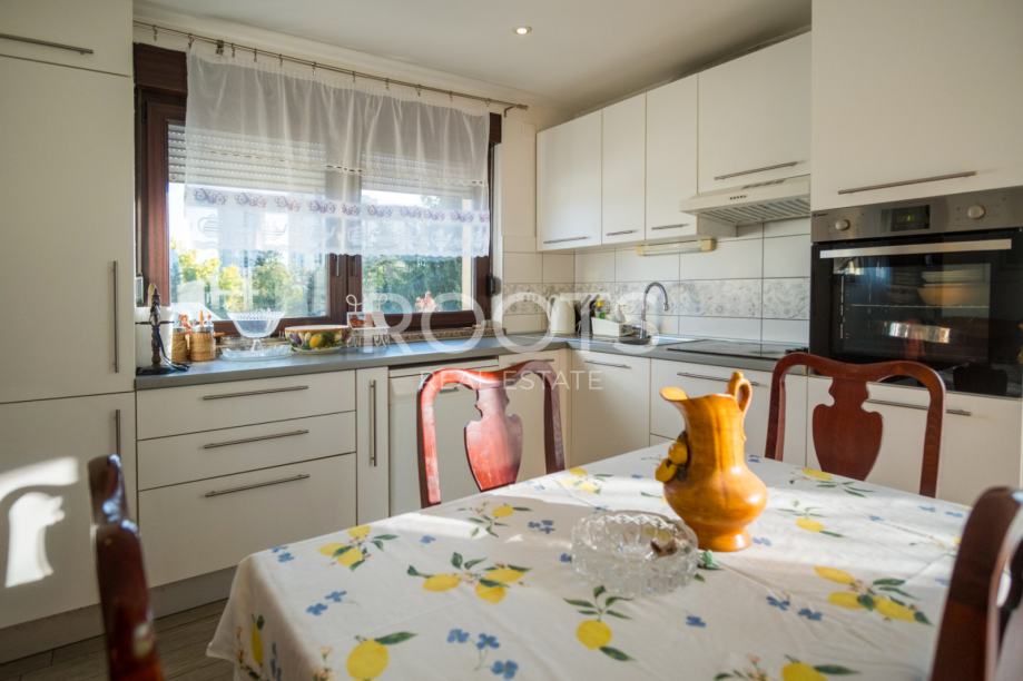 Ukupno nekretnina ima 4 spavaće sobe, 3 kupaonice, gostinjski wc, ostavu i dva balkona sa lijepim pogledom.