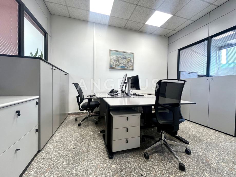 Prizemni ulični prostor sa velikim staklenim stijenkama se proteže na 2 etaže. Prva etaža NKP 205 m2 se sastoji od ulaznog hola sa recepcijom, 11 uredskih soba, 2 toaleta, kuhinje i ostave. Stepenice vode u suterenski dio gdje se nalaze još dvije prostorije koje su vratima povezane sa izlazom stražne strane zgrade. Posebnim ulazom je odvojena prostorija vlastite uređene arhive NKP 33m2.