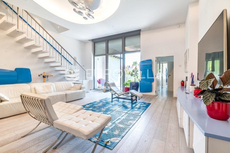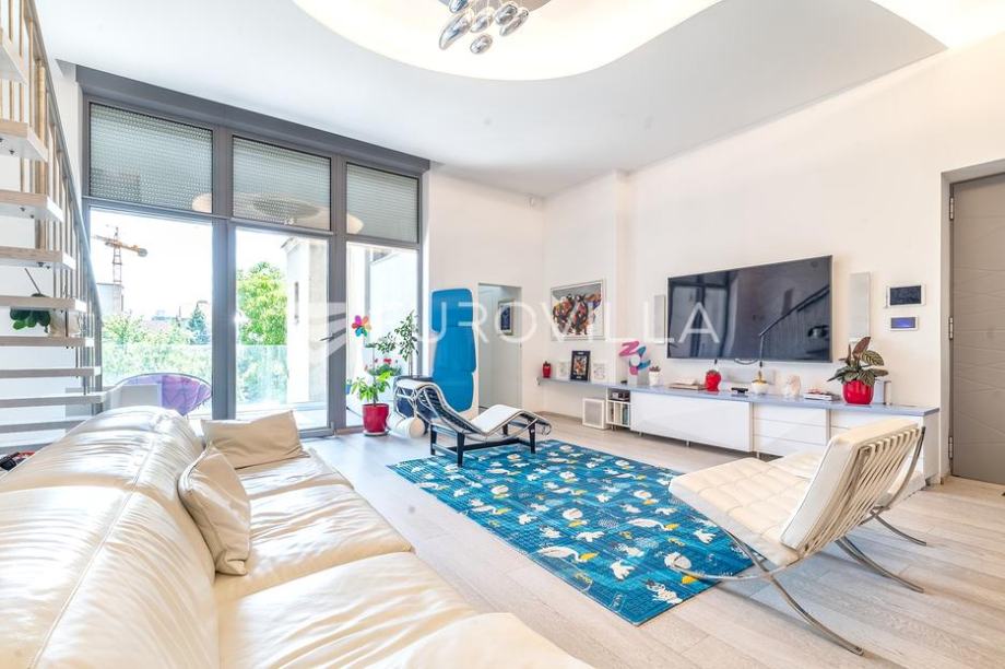 Zagreb, Deželićeva, luxurious four-room apartment for rent, NKP 115 m2. It spreads over two floors. On the lower floor there is a spacious living room with an open floor plan with a kitchen, a dining room and an exit to a beautiful loggia with a view of the greenery and the park, then a large...
