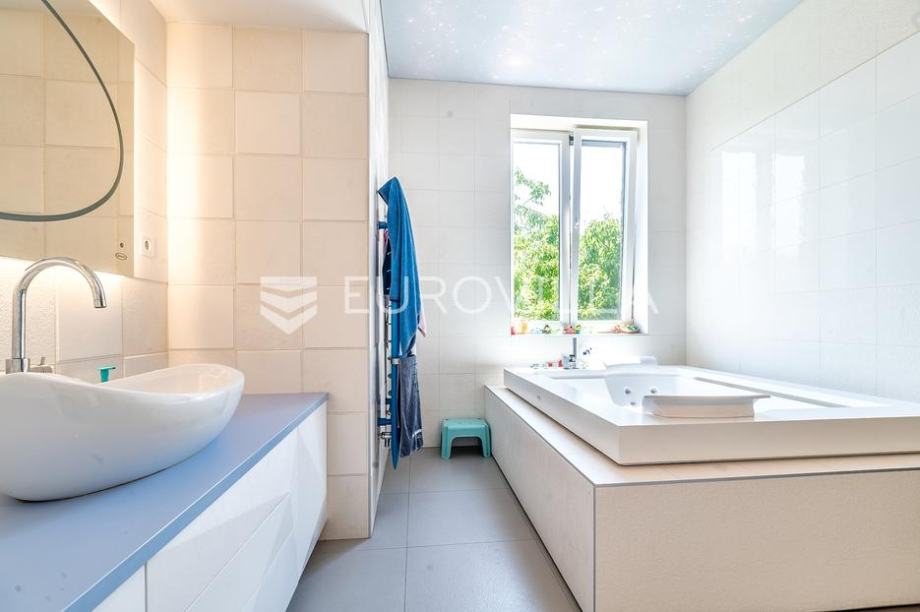 Zagreb, Deželićeva, luksuzan četverosoban stan za najam, NKP 115 m2. Prostire se na dvije etaže. Na donjoj etaži nalazi se prostrani dnevni boravak otvorenog tlocrta s kuhinjom, blagovaonicom te izlazom na predivnu Loggiu s pogledom na zelenilo i park, zatim velika kupaonica s jacuzzijem i...