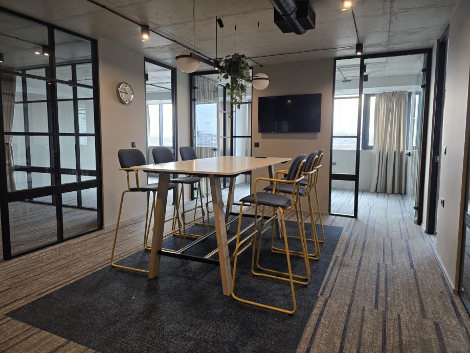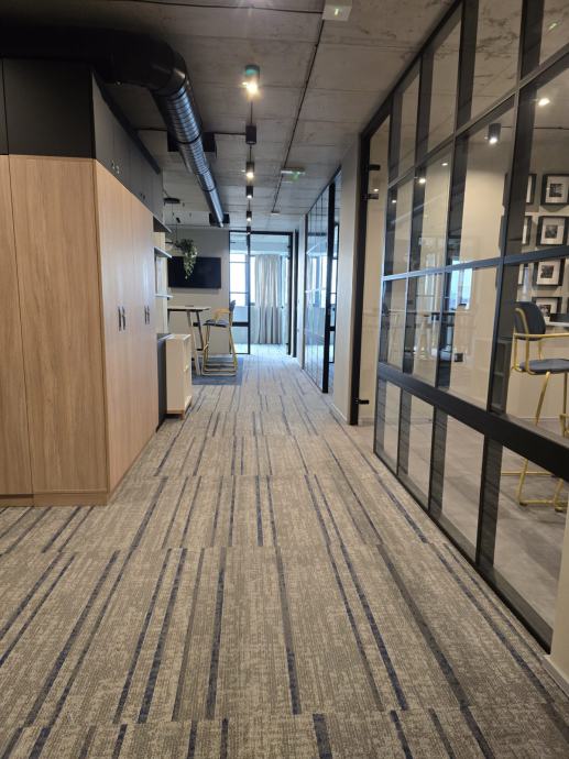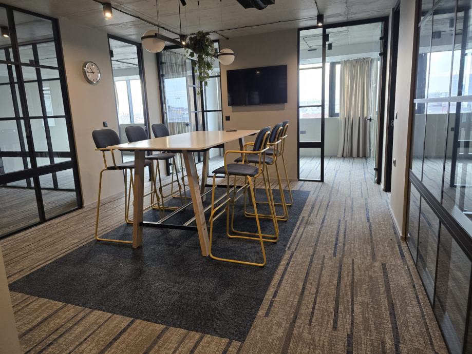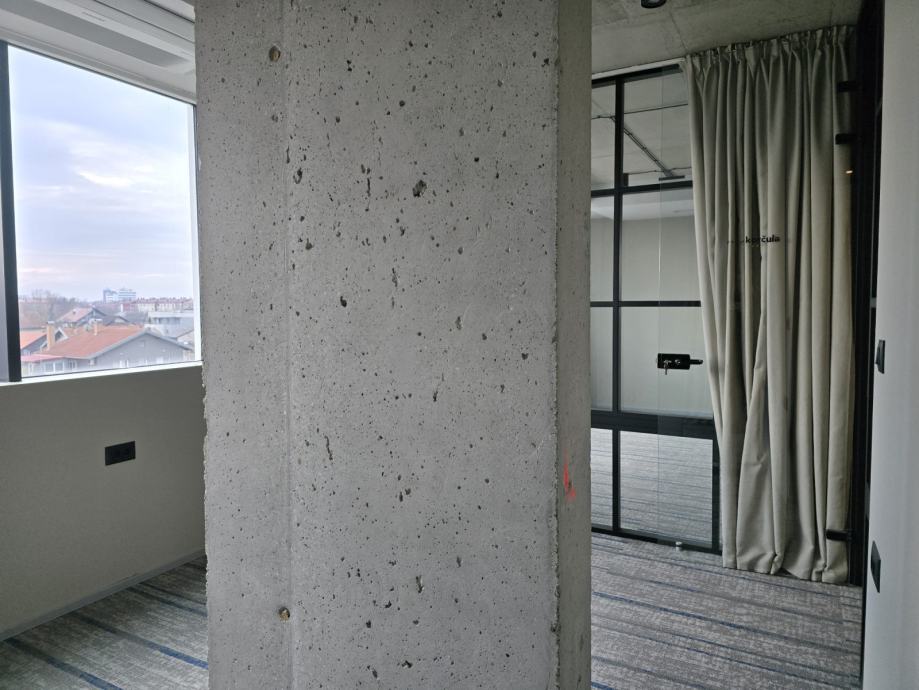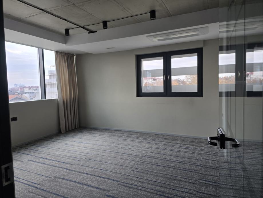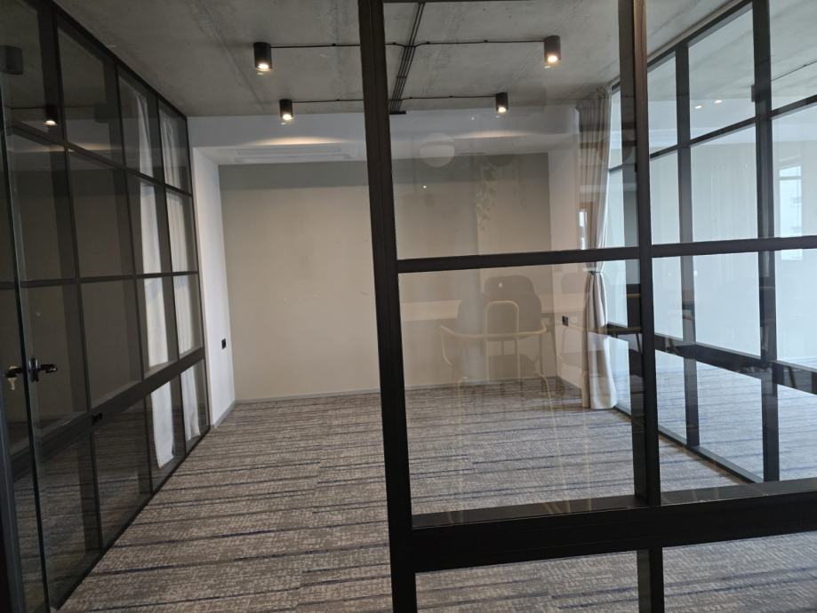Iznajmljuje se lijep ured u novijoj zgradi sa liftom (moguće i salon/ordinacija itd). Ured se sastoji od prostranog i otvorenog ulaznog dijela, 5 ureda različite veličine, velike sobe za sastanke, velike kuhinje iz koje se ulazi u manje skladište, te dva toaleta. Uz ured je obavezan najam min. 3 garažna mjesta po cijeni 50Eur/kom (moguće max.6). Oko zgrade je dostupan ne naplatni parking. Vlasnik je pravna osoba, te se na cijenu obračunava PDV. Isključivo dugoročan najam.
