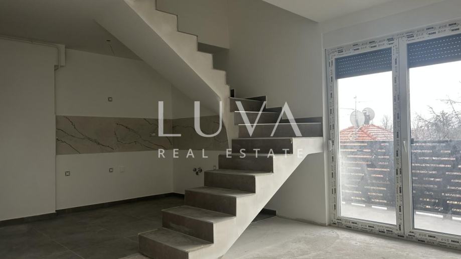 Trosoban, dvoetažni stan u potkrovlju površine 63,77 m2, orijentacije na jug i zapad s pripadajućim parkirnim mjestom i spremištem.