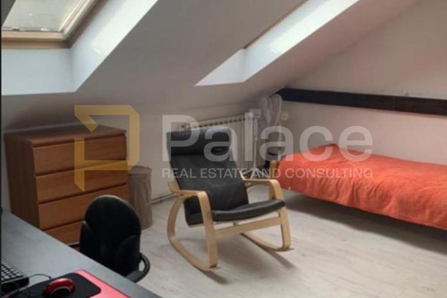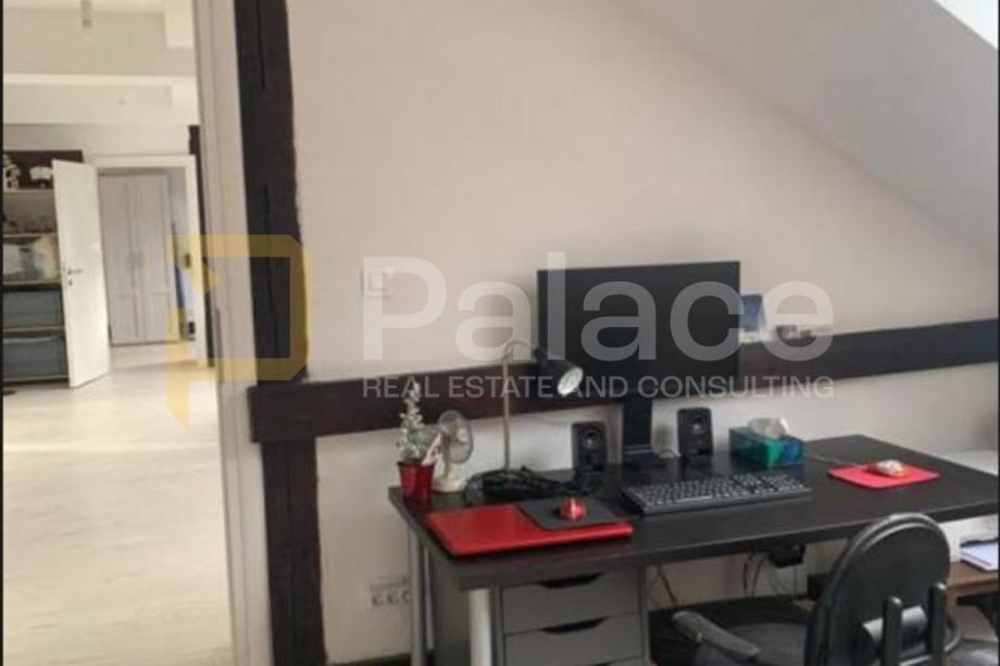 Stan se sastoji od 4 spavaće sobe, radne sobe, dnevnog boravka s kuhinjom, 2 kupaonice s WC-ima, te ulaznog predsoblja. Stanu pripada i šupa u podrumu, te vlastiti parking u dvorištu zgrade.
