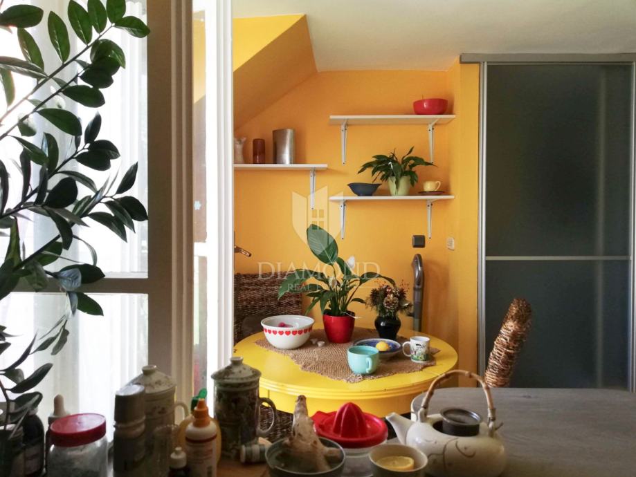 Smješten je u potkrovlju stambene zgrade s ukupno tri kata, što osigurava iznimnu privatnost, mir i osjećaj izdvojenosti od gradske vreve. Stanu pripada ostava, a na raspolaganju je i dvorište na zajedničko korištenje stanara.