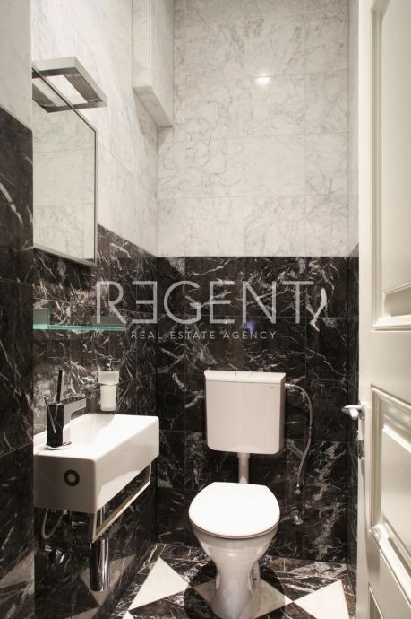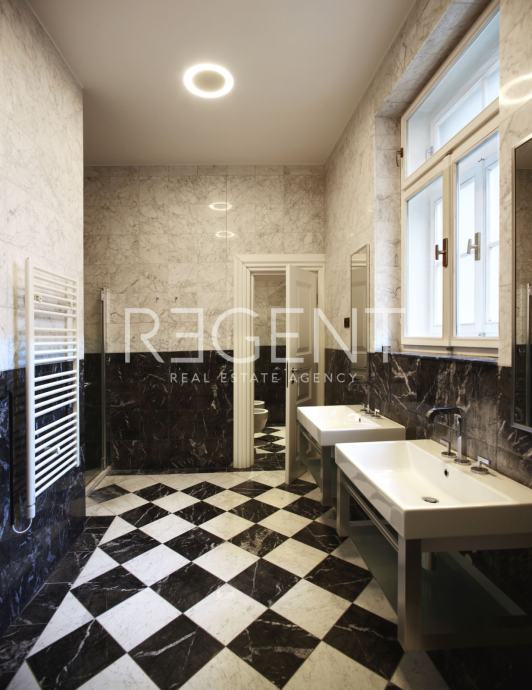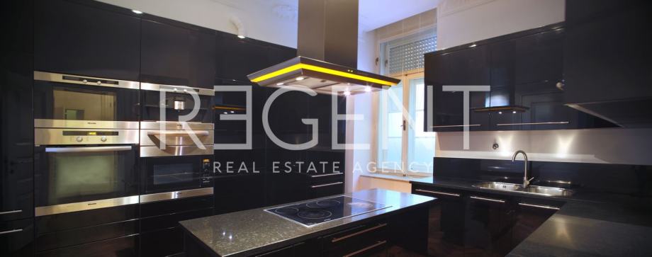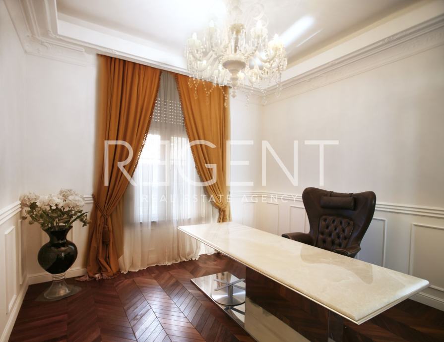 Izuzetno lijepo uređen i luksuzan poslovni prostor smješten je na drugom katu starogradnje, potpuno adaptiran i odmah dostupan za dugoročni najam uz minimalni period od 12 mjeseci. Ovaj jedinstveni prostor zauzima cijelu etažu i orijentiran je pretežno prema zapadu, što osigurava obilje prirodne svjetlosti te ugodan pogled na park Lenucijeve potkove. Ukoliko zakupac želi koristiti prostor isključivo kao ured, nekretnina se iznajmljuje nenamještena uz mjesečnu cijenu najma. Postoji mogućnost prilagodbe na stambenu namjenu s kompletnim namještajem, pri čemu najamnina iznosi 4.500 EUR mjesečno.Ulazni hodnik pruža reprezentativan dojam prilikom dolaska, a odmah uz njega nalazi se toalet za goste te garderoba za odlaganje obuće i odjeće. Kuhinja, opremljena kamenim površinama i otokom, idealna je za pripremu i posluživanje pića te održavanje kratkih sastanaka. U nastavku se otvara prostrani otvoreni prostor koji se može organizirati kao više radnih stanica ili prezentacijska zona. Ispred njega smještena je zasebna radna soba pogodna za sastanke menadžmenta ili manje konferencije.Ukoliko se prostor prilagođava stambenoj namjeni, tu je i spavaći dio koji uključuje master spavaću sobu s vlastitom kupaonicom i garderobom, dvije dodatne spavaće sobe koje se mogu koristiti kao uredi ili arhiva, te dvije dodatne kupaonice i zaseban toalet. Sve prostorije uređene su najkvalitetnijim materijalima – parketi od hrasta ili hrast-pjelina osiguravaju dugotrajnost i elegantan izgled.Ovaj prostor ima potpuno nove instalacije (električne i vodovodne), betonsku deku pogodnu za ugradnju teških ormara i opreme, spušteni strop visine 345 cm koji poboljšava akustiku i stvara dojam prostranosti, kao i vanjsku PVC stolariju s dvostrukim staklima koja osigurava izvrsnu termoizolaciju i zvučnu izolaciju. Zidna i stropna izolacija vrhunske je kvalitete, dok centralni klima-uređaj ugrađen u strop jamči optimalnu temperaturu tijekom cijele godine. Grijanje je etažno plinsko, s vlastitim plinskim bojlerom, što omogućuje brzo i ravnomjerno zagrijavanje prostora. Alarmni sustav je instaliran i u funkciji, s mogućnošću dodatne video-nadzorne zaštite.Na zapadnoj strani prostora nalazi se balkon koji gleda na zeleni pojas Lenucijeve potkove. Za sve zaposlenike ili stanare, režijski troškovi se obračunavaju prema stvarnoj potrošnji (struja, plin, voda), a uobičajeni iznosi za uredske prostore u centru Zagreba kreću se između 200 i 300 EUR mjesečno, ovisno o intenzitetu korištenja. Polog za najam iznosi dvije mjesečne najamnine.Lokacija je gotovo nenadmašna – u samom srcu Donjeg grada, u mirnom okruženju s minimalnim prometom. Udaljenost do tramvajske stanice iznosi tek nekoliko minuta hoda, a autobusni promet na glavnom gradskom trgu je udaljen oko pet minuta pješice. U neposrednoj blizini nalaze se brojni kafići, restorani, pekare i trgovine, a za opuštanje su tu park Zrinjevac i zeleni pojas Lenucijeve potkove. Nedaleko su i kulturne ustanove poput Hrvatskog narodnog kazališta te glavni željeznički kolodvor, a u krugu od jednog kilometra nalaze se popularni muzeji i galerije.Za dodatne informacije slobodno nas kontaktirajte!Za više informacija, kontaktirajte našeg agenta na brojeve telefona: